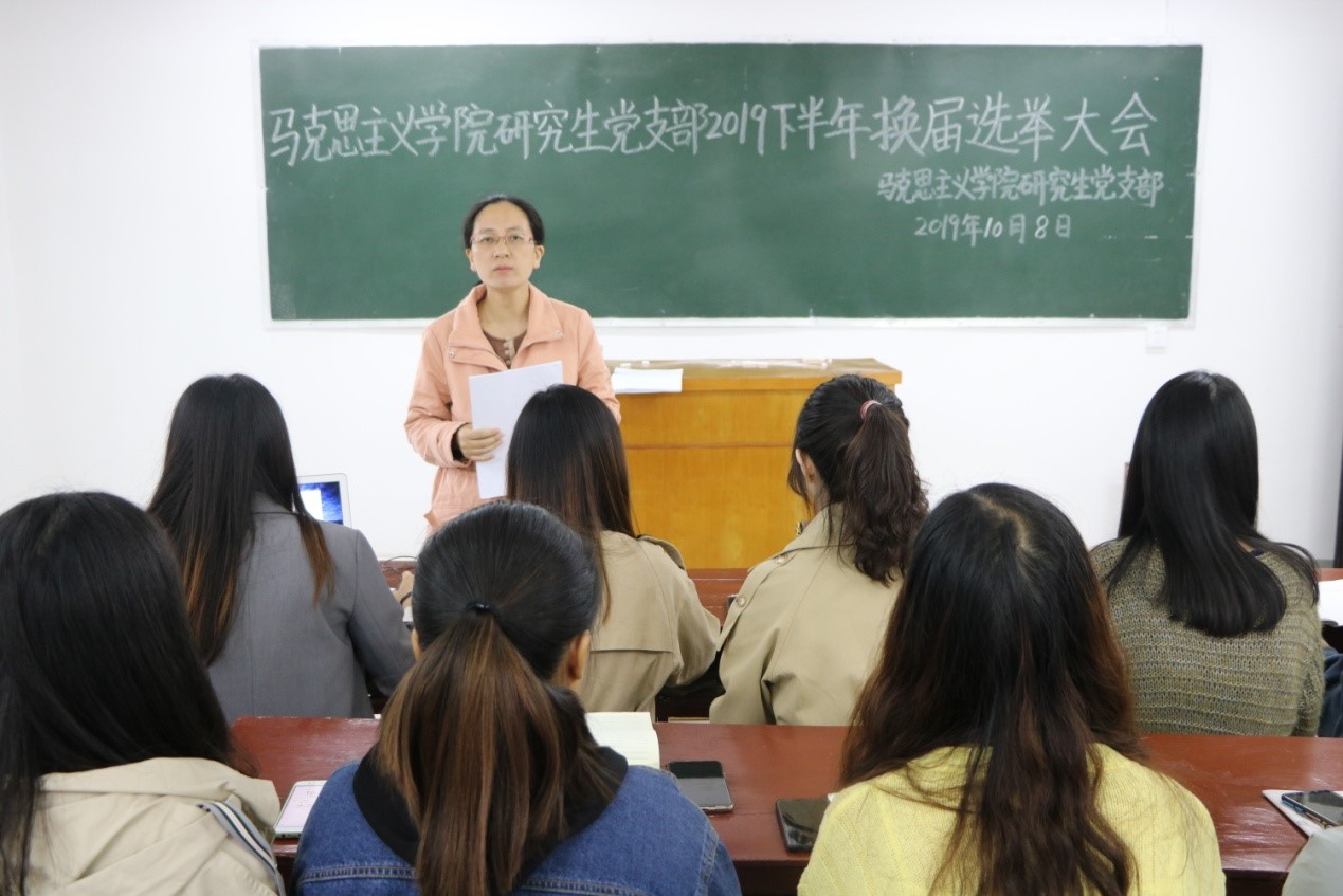 10月8日下午,我院研究生党支部换届选举大会在教五楼203教室举行。全体支部党员参加本次会议,支部书记卢云晓主持会议。