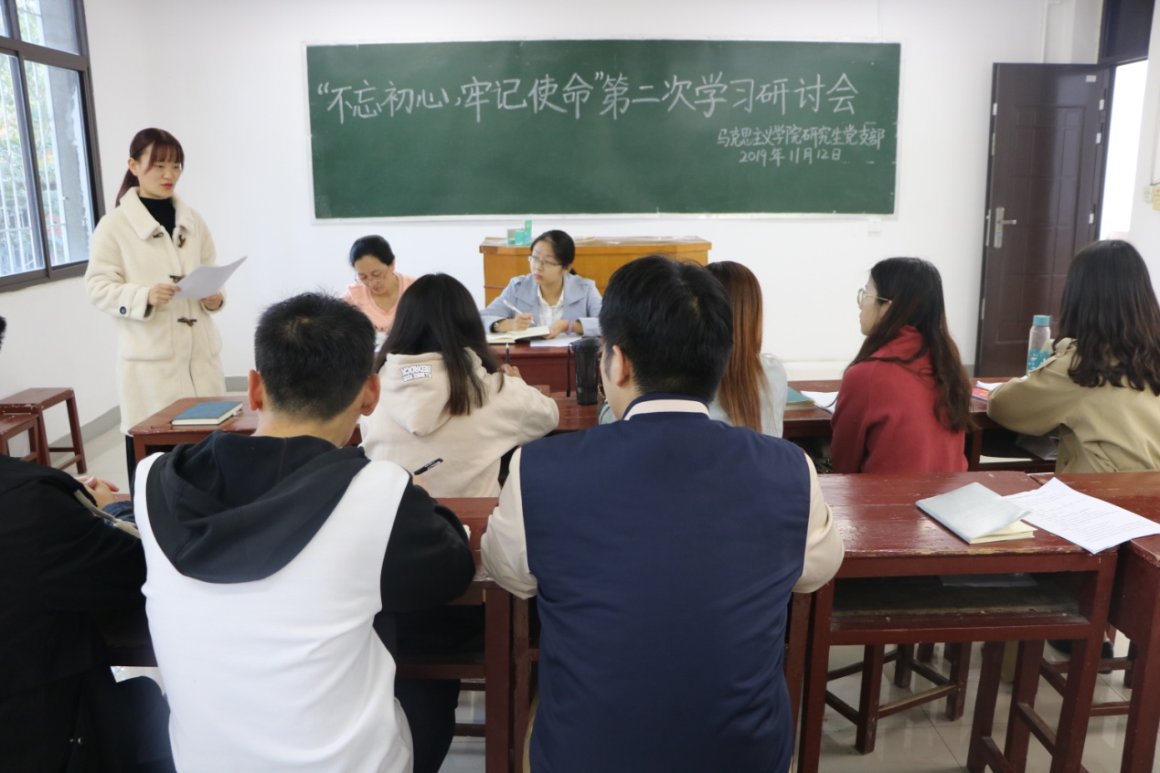 为继续强化主题教育成果,11月12日下午,我院研究生党支部在教五楼203教室开展了“不忘初心、牢记使命”第二次学习交流会,支部党员和入党积极分子参加会议。会议由支部书记卢云晓主持。