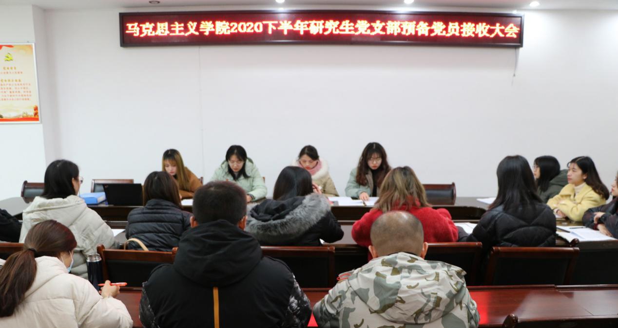 高松垚宣读发展名单。按照逐个讨论逐个表决的原则,全志雄等六位同志分别宣读《入党志愿书》,汇报自己对党的认识、入党动机、本人履历、家庭和主要社会关系情况。六位同志的入党介绍人分别就发展对象在在校期间的有关考察情况作总结发言。随后,高松垚向大会报告发展对象的审查情况,与会党员结合六位同志的思想汇报和入党申请书及其平时的了解充分发表意见。党支部正式党员以无记名投票方式进行表决,一致同意全志雄、孙梦梦、陈云波、张馨悦、黄阁英、程前共六位同志转为预备党员。