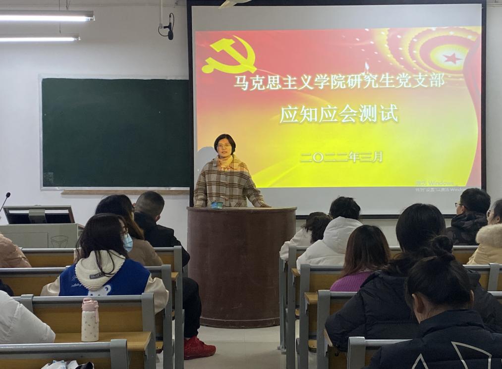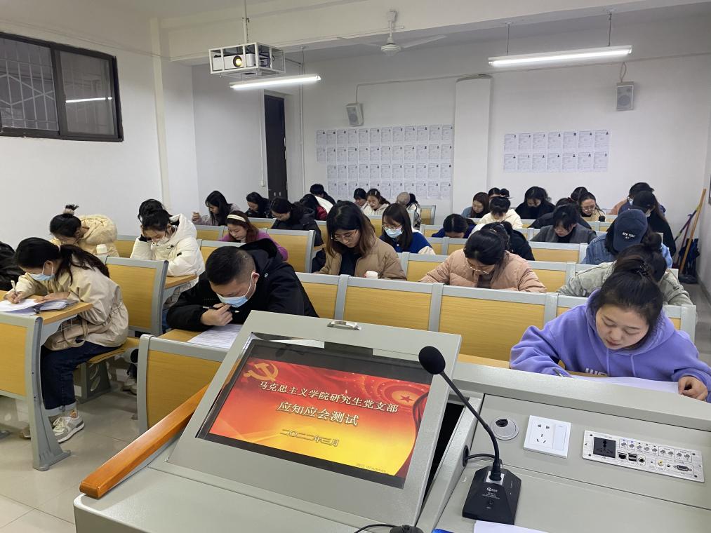 为推进“两学一做”学习教育常态化、制度化,引导基层党组织和广大学生党员、预备党员、入党积极分子进一步统一思想、凝聚共识、营造深入学习贯彻习近平新时代中国特色社会主义思想的浓厚氛围,3月17日下午,我院研究生党支部组织支部党员、预备党员、入党积极分子于教学楼5楼201、203教室开展了党员应知应会知识竞赛党日活动。活动由支部书记郑晨霞主持。
