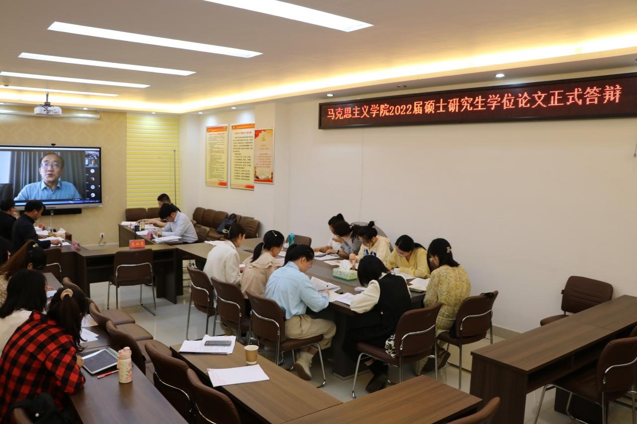 根据学院关于2022年硕士研究生毕业工作的总体安排,5月15日,我院在社科楼323、320会议室顺利完成2022届49位硕士研究生学位论文正式答辩工作。本次答辩采用线上线下相结合的方式进行,2019级学术型研究生学位论文答辩工作邀请了河南科技大学ok138cn太阳集团529院长刘振江担任答辩主席,唐国战、李蕊、门献敏、王帆宇担任答辩委员;2020级学科教学(思想政治教育)专业研究生学位论文共分3组进行,答辩一组邀请了河南理工大学ok138cn太阳集团529院长郑小九担任答辩主席,周智、厉有国、杨国建(信阳高中)、黄玲丽、胡春湘担任答辩委员;答辩二组邀请了河南师范大学ok138cn太阳集团529院长蒋占峰担任答辩主席,程晋富、王勇威(信阳高中)、李世书、王建礼担任答辩委员;答辩三组邀请了郑州航空工业管理学院ok138cn太阳集团529院长汪青松担任答辩主席,朱四倍、陈勇(信阳市羊山中学)、常文涛、陈杰担任答辩委员。
