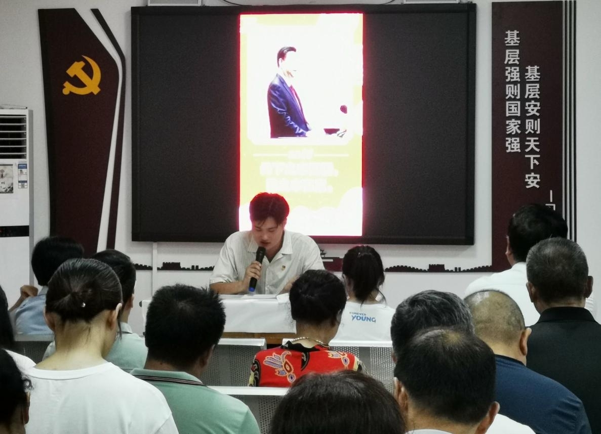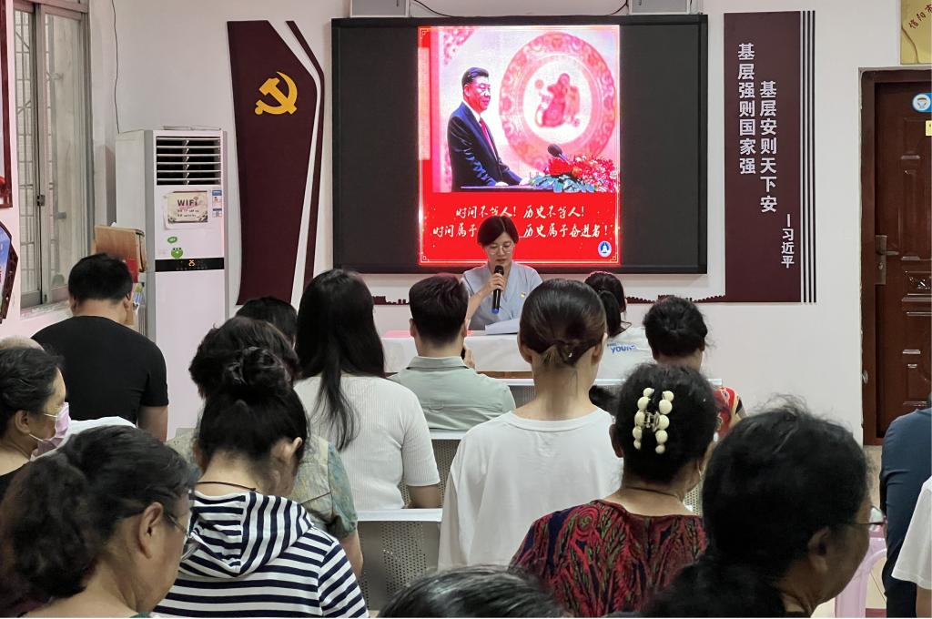 为深入学习贯彻习近平总书记系列讲话精神,提升党员同志的思想觉悟和党性修养,以良好的精神面貌迎接党的二十大胜利召开,在“七一”来临之际,我院研究生党支部书记郑晨霞和支部党员鲁桐君、汤欢一同赴华森社区开展了习近平金句宣讲活动。