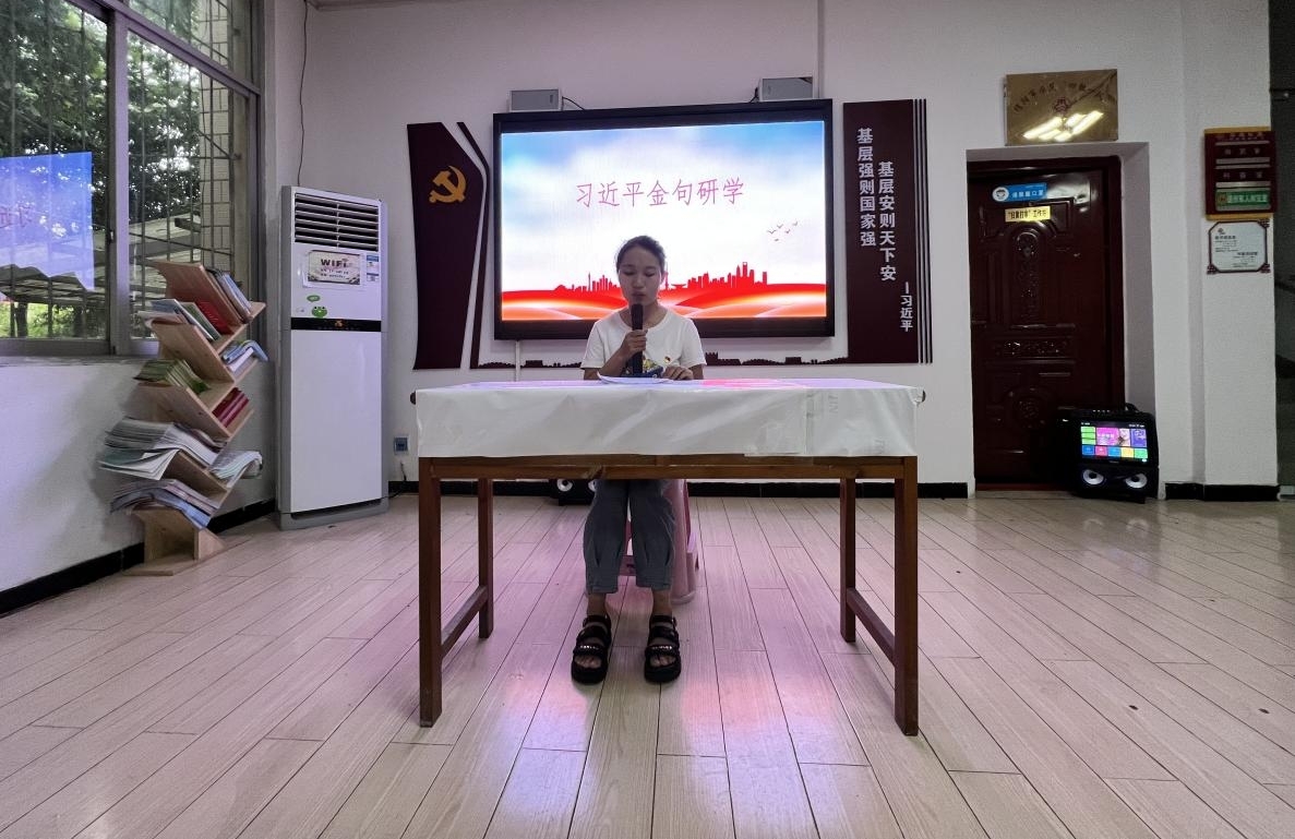 习近平总书记的系列讲话汲取了五千年中华文明的创造、奋斗、团结、梦想等精神,是新时代的宣言书。在活动开始后,几位党员同志结合自身实际,围绕总书记有关不同方面的金句展开宣讲。郑晨霞同志针对“大别山革命精神是我党的精神财富”这一主题作出了较为详细的论述,并强调在新的征程中我们应当大力传承和弘扬大别山精神,尤其是党员同志更加需要深刻领会这一精神的丰富内涵,以实际行动赓续红色基因,书写新的时代篇章。鲁桐君同志以“江山就是人民、人民就是江山,打江山、守江山,守的是人民的心。”为主题,通过对党的百年历史的回顾,充分说明虽然不同历史时期党的任务不同,但根本来说党的百年历史就是一部为人民打江山、守江山的历史。汤欢同志围绕习近平总书记多次提到的“不断满足人民对美好生活的向往”这一主题,从物质文化、民主法治建设、安全和环境等方面谈了自己对人民美好生活需要基本内涵的理解,并表示党员同志要始终践行全心全意为人民服务的宗旨。