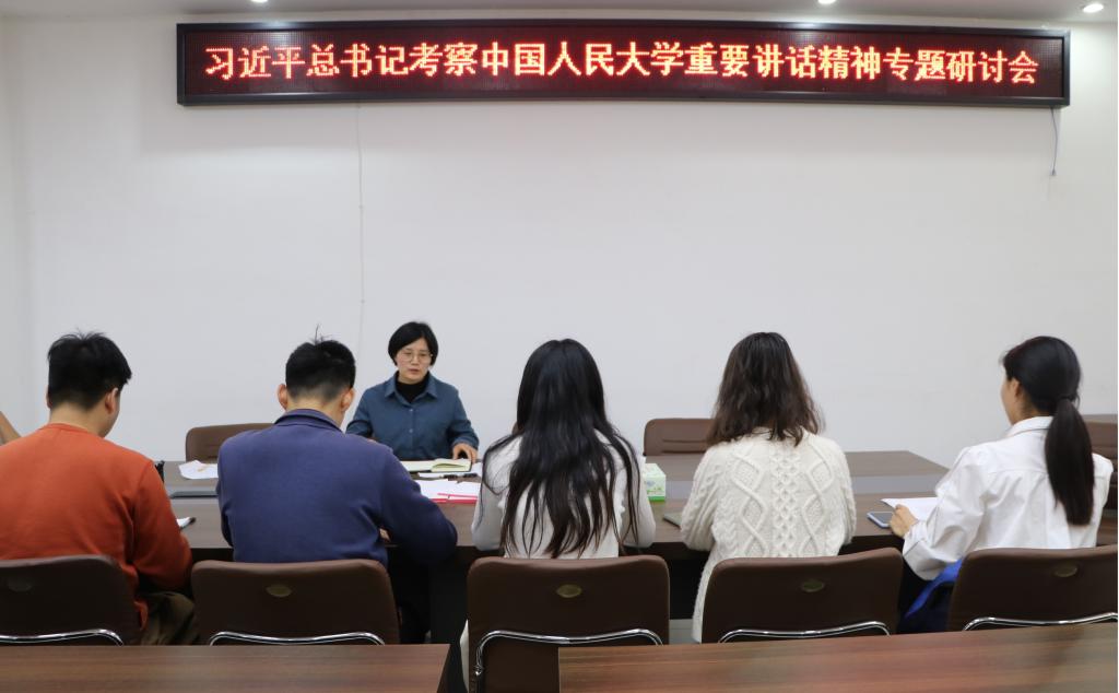 为深入学习贯彻习近平总书记考察中国人民大学重要讲话精神,近日,我院研究生党支部于社科楼323会议室开展了集体学习研讨会,会议由支部书记郑晨霞同志主持。