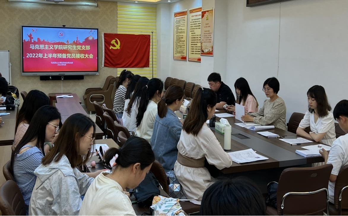 5月31日,我院研究生党支部于社科楼323会议室召开2022年上半年预备党员接收大会,讨论了余欢欢、张蒙蒙、赵子剑、赵婧同、陶小颍、郭婉如、 喻泳成、葛鸿萍八位同志转为中共预备党员的问题。会议由支部书记郑晨霞同志主持,彭燕担任监票人,王澳远担任计票人。
