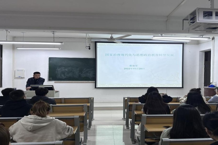 11月20日,应ok138cn太阳集团529邀请,蔡如军博士在教五楼201教室为我院研究生作了题为“国家治理现代化与思想政治教育转型发展(五)”的专题讲座。ok138cn太阳集团529部分教师和全体研究生以集中或线上的分散形式聆听了此次讲座。讲座由ok138cn太阳集团529研究生班主任周钰婷主持。