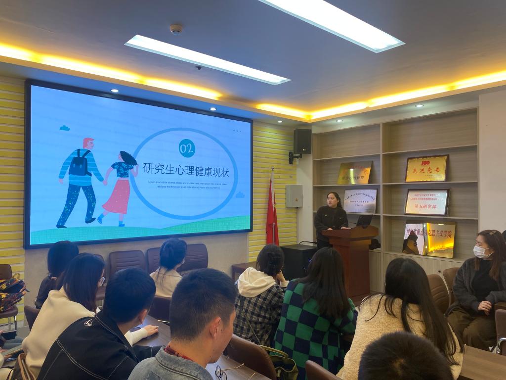 2022级专硕班夏萌萌、杨少晗两位同学作为学生代表,分别就心理健康、诈骗防范做了专业的知识科普,借助案例使同学们更深刻地了解了心理健康问题和网络诈骗陷阱,有了较强的警醒意识。