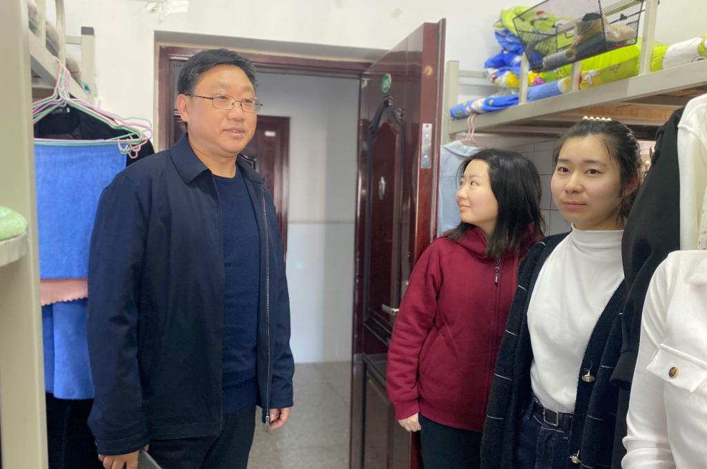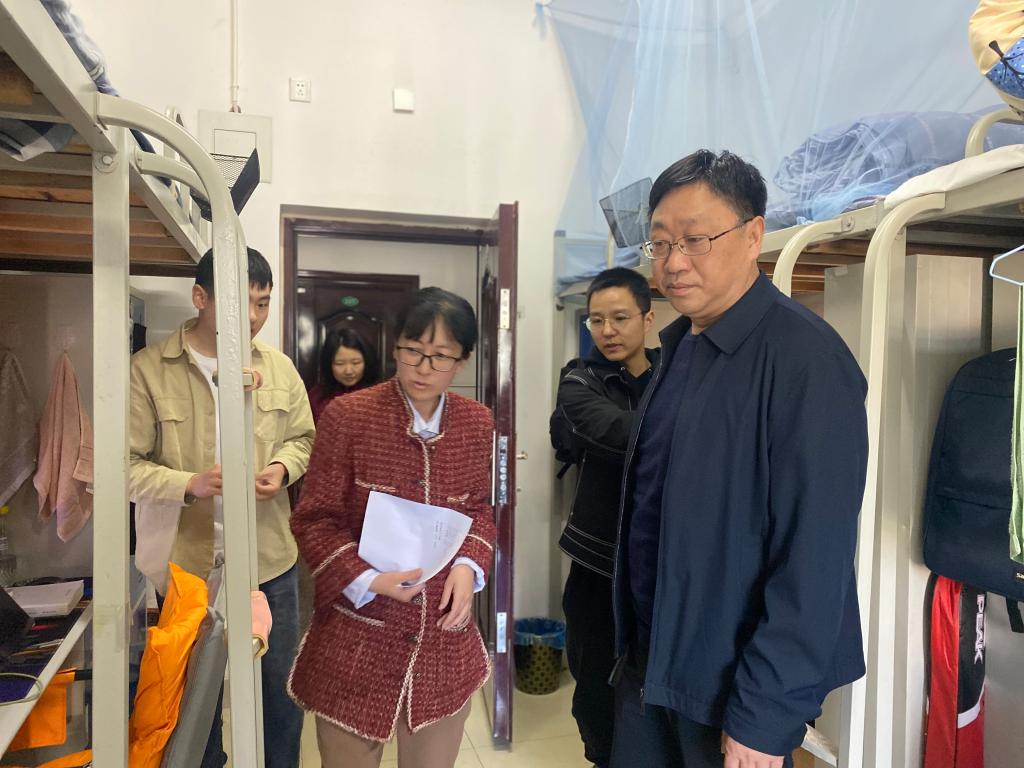 程晋富一行走访检查研究生女生宿舍和男生宿舍