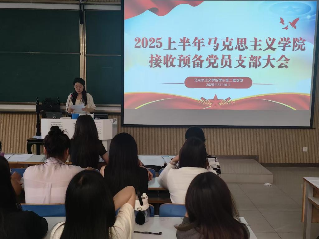 2025年5月16日下午,中共ok138cn太阳集团529学生第二党支部委员会在社科楼515召开了2025年上半年接收预备党员支部大会。我院学生第二党支部书记任婷,学生第二党支部全体党员、预备党员和党员发展对象共同参加此次会议。会议由高俊雅同志主持。