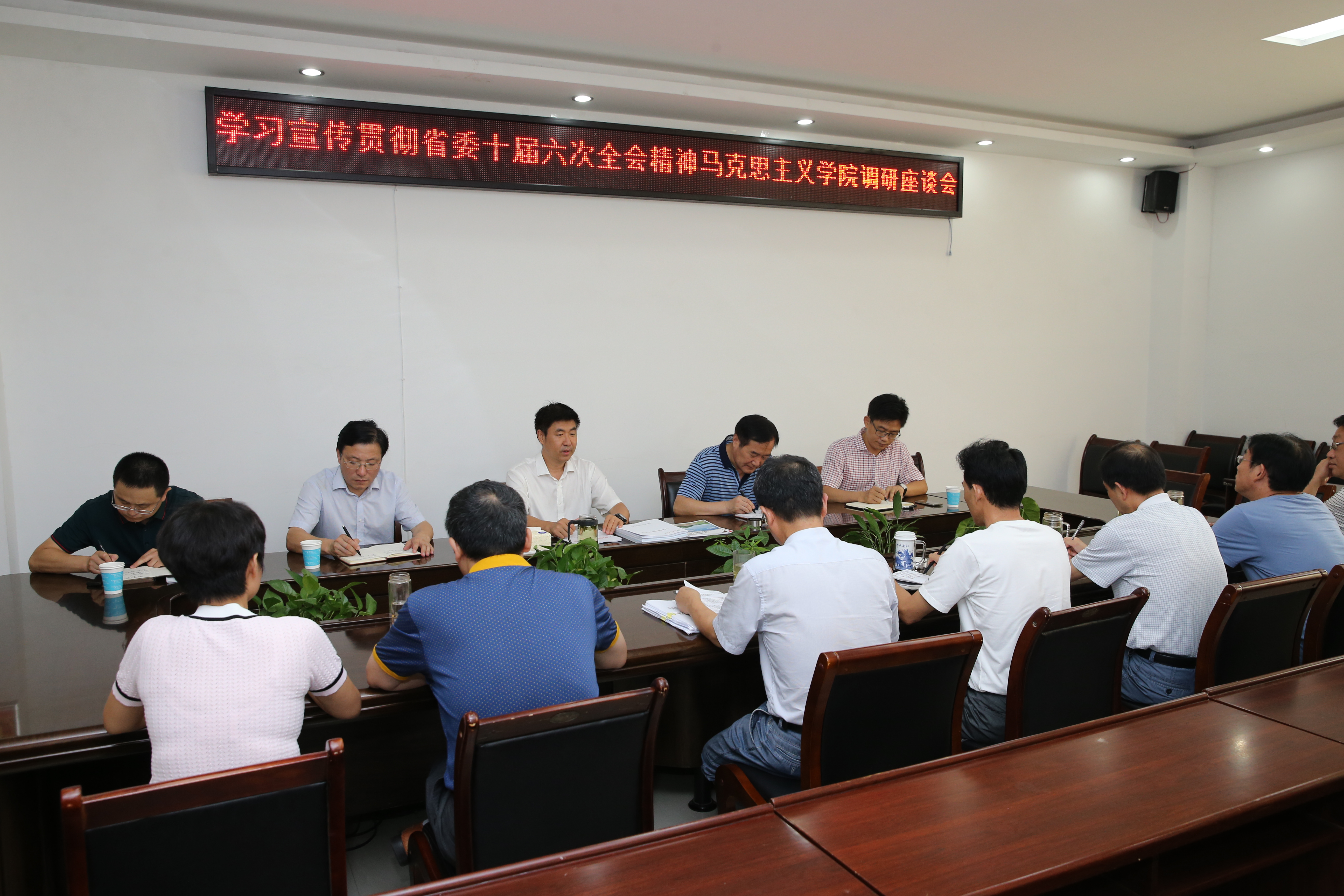 7月30日上午,校党委书记宋争辉莅临我院开展学习宣传贯彻省委十届六次全会暨省委工作会议精神进行督查指导,校党委组织部部长唐景旺、宣传部部长丁少锋、党办副主任房加帅等相关人员陪同参加,我院党政班子成员参加座谈会。