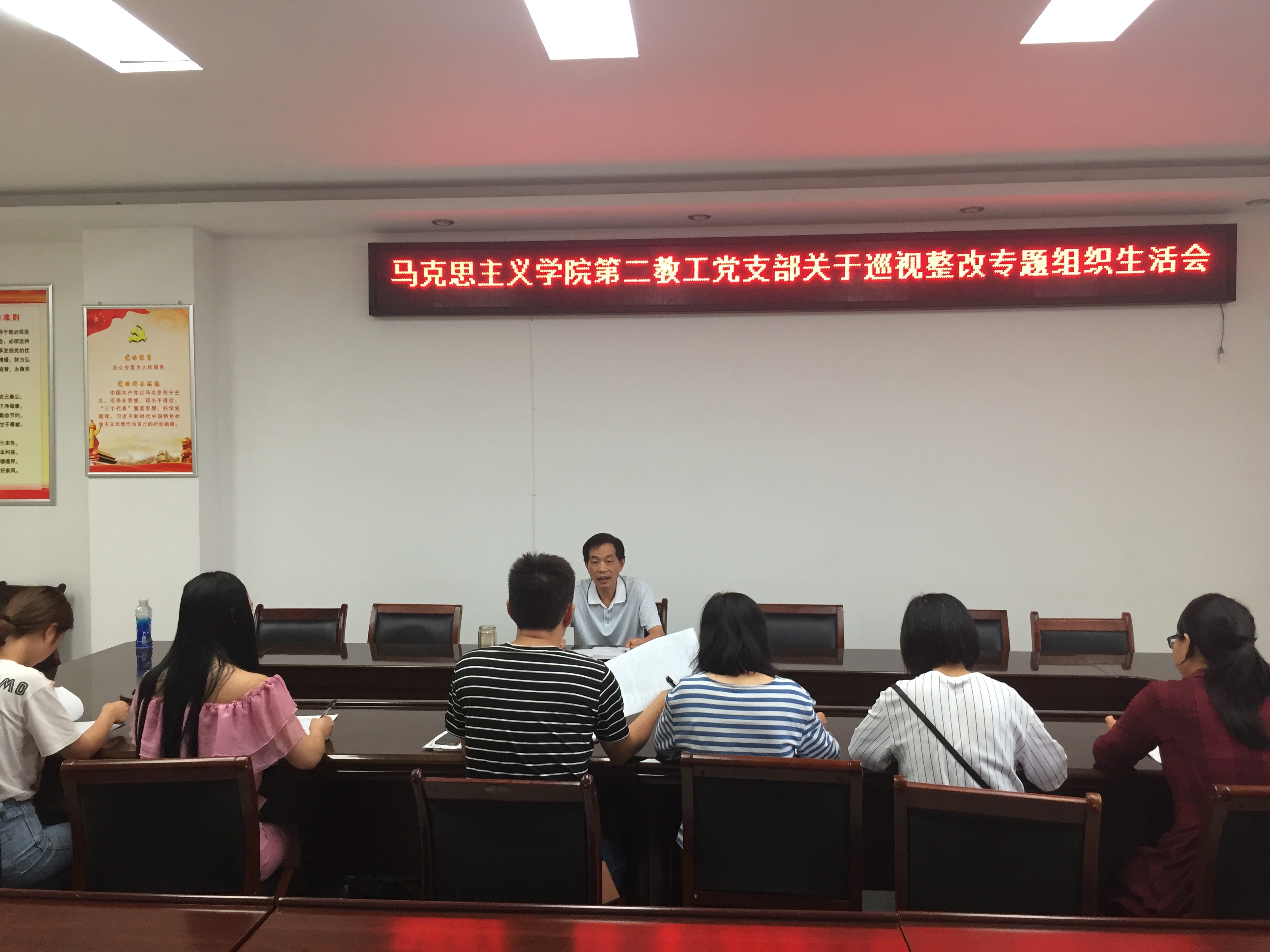 9月19日下午,我院教工第二党支部在323会议室召开了党员巡视整改专题组织生活会,支部全体党员参加会议。会议由代理党支部书记黄世明同志主持。