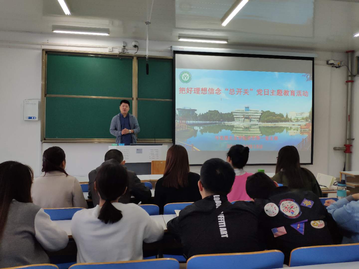 会上,孙绪曙对于本次党日主题教育活动的目的和必要性进行了说明,结合本次主题对支部成员提出了建议。他指出,要坚定理想信念,扣好人生“第一粒扣子”。党性修养上,不能谋求自己的私利和特权,要培养自己“吃苦在前,享受在后”的精神品质,努力做一个高风亮节的人,充分发挥共产党员的先锋模范作用。理论学习上,对党的基本理论和知识要学深、学实。党支部建设上,要严格按照组织要求积极参与组织生活,增强凝聚力和战斗力。随后,学生第一党支部全体党员就如何把好理想信念“总开关”展开学习讨论,纷纷认识到:第一,要志存高远,放开眼界,不满足于现状。第二,把理想信念建立在科学理论的指导下,不断提高马克思主义思想觉悟和理论水平,提高党员政治站位,切实担起政治责任。第三,要将理想信念落实于实践中,脚踏实地,积极发挥学生党员模范先锋作用。