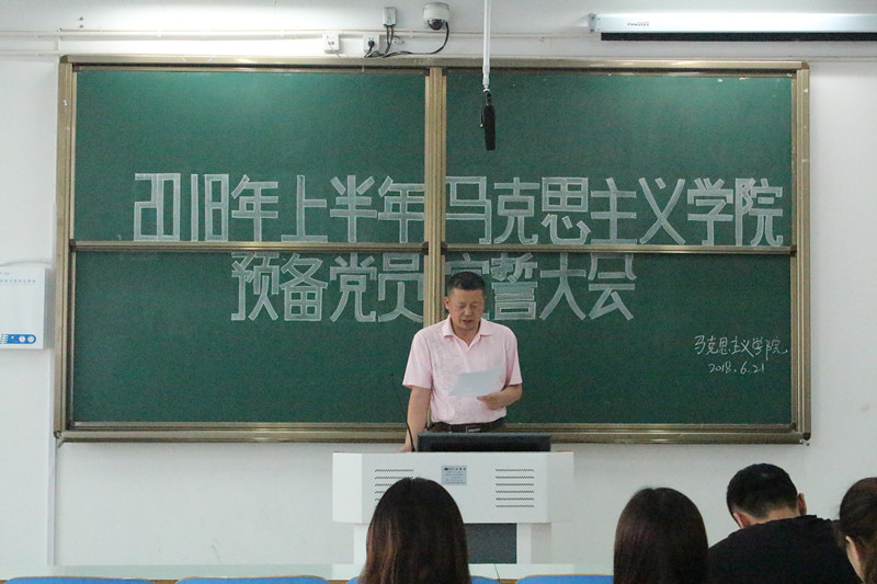 6月21日上午,ok138cn太阳集团529在社科楼516教室召开了2018年上半年预备党员宣誓大会,我院党委副书记徐永新,学生第一党支部书记孙绪曙,第二党支部书记曹栋及正式党员、预备党员共同参加此次会议。宣誓大会由孙绪曙主持。