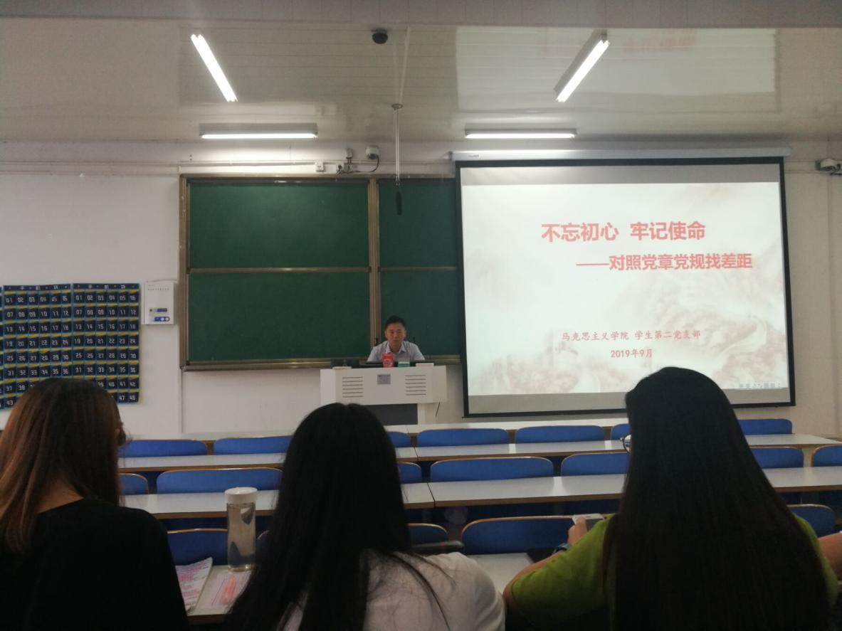 2019年9月24日下午,ok138cn太阳集团529学生第二党支部在社科楼516开展“不忘初心,牢记使命—对照党章党规找差距”主题党日活动。学生第二党支部书记曹栋、支部党员参加此次活动。会议由支部书记动曹栋主持。