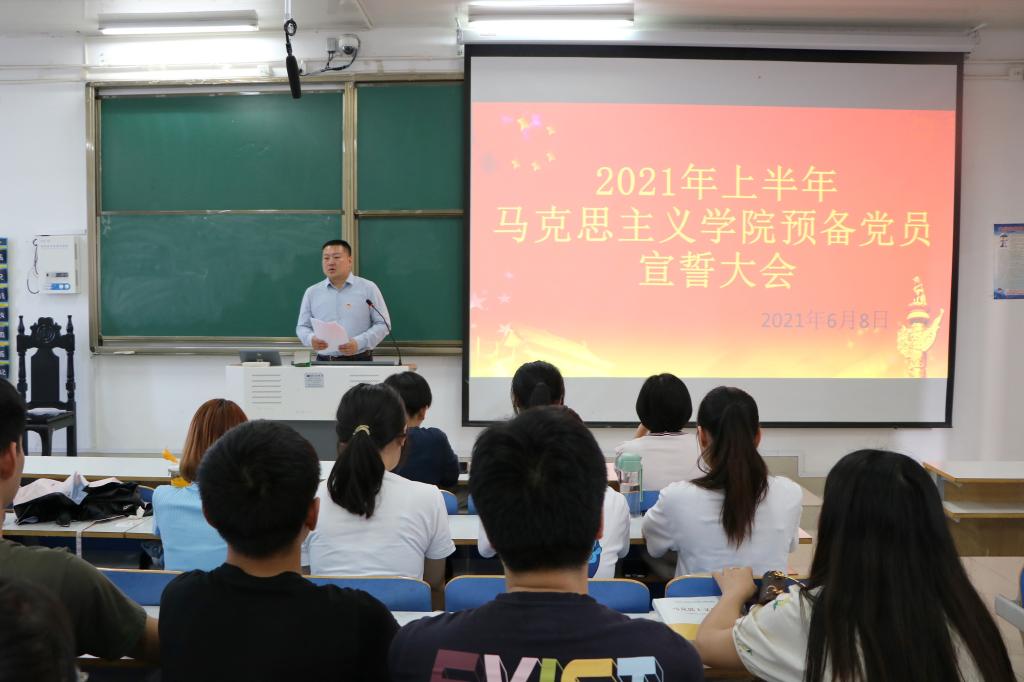 6月8日下午,我院2021年上半年预备党员宣誓大会在社科楼514教室举行。学院党委副书记何晓坚、学生党支部书记、预备党员和部分入党积极分子共同参与此次大会。会议由预备党员王明亮主持。