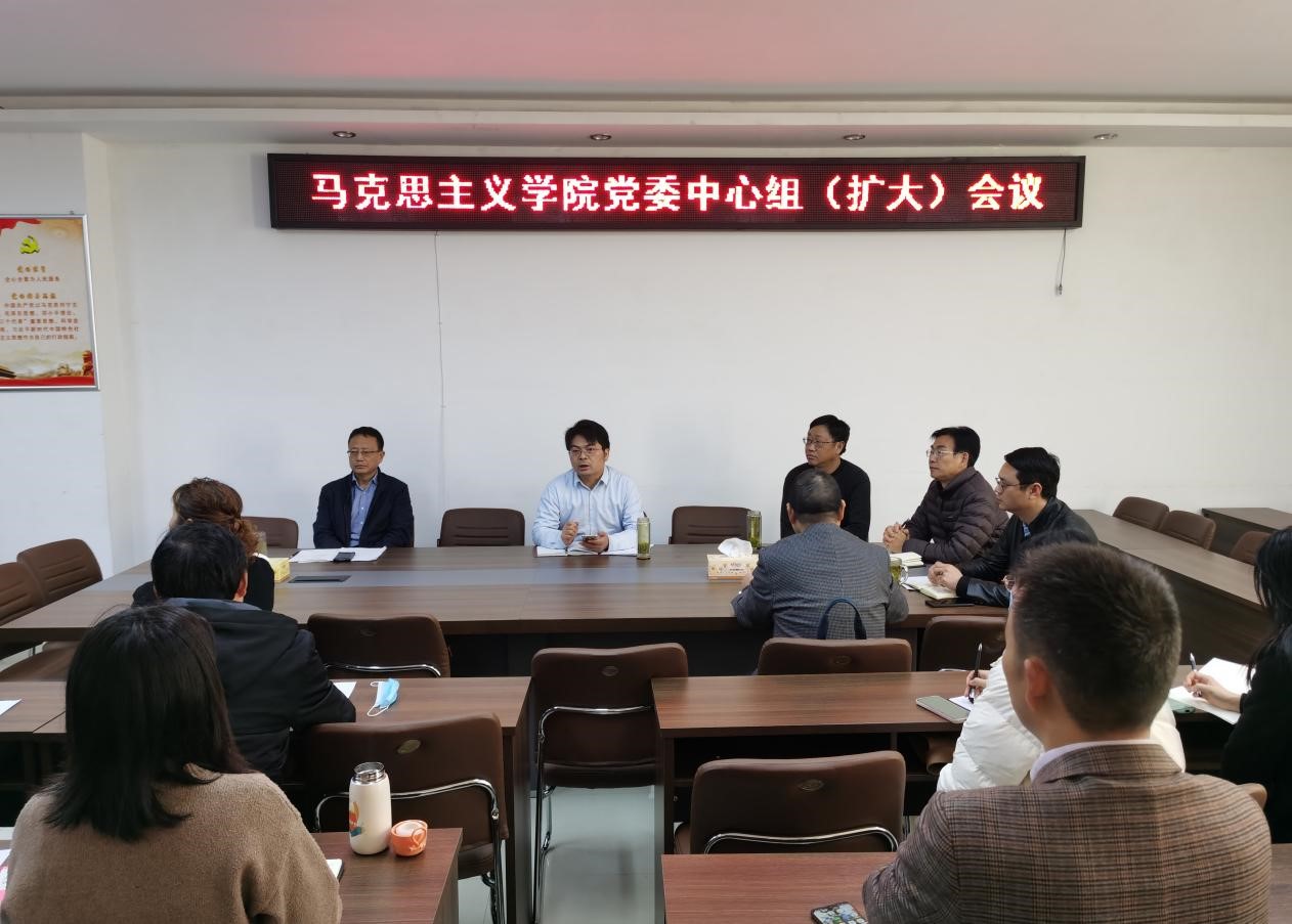 11月15日上午,ok138cn太阳集团529党委理论中心组在323会议室召开扩大会议,集中学习党的十九届六中全会精神。ok138cn太阳集团529领导班子成员、教研室主任、各党支部书记、辅导员和班主任参加学习会。会议由学院党委书记朱四倍主持。