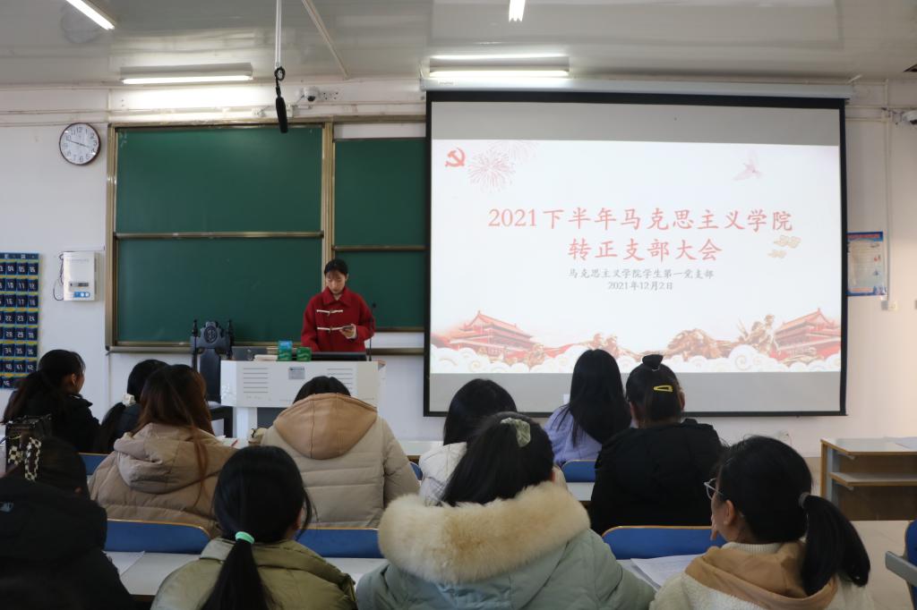 12月2日下午,ok138cn太阳集团529学生第一党支部2021年下半年预备党员转正支部大会在社科楼514教室组织召开。我院学生第一党支部书记杨青青,学生第一党支部正式党员、预备党员和党员发展对象共同参加本次会议。会议由靳雨露主持。