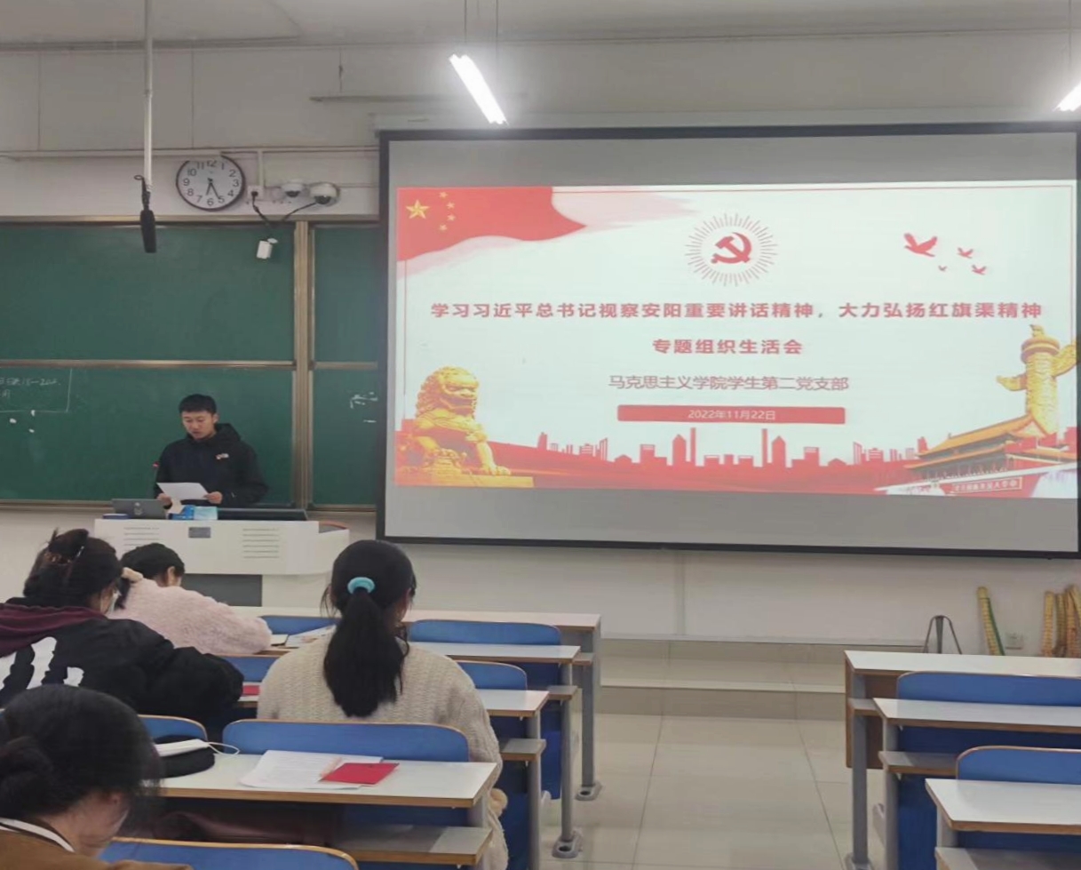 为深入学习贯彻党的二十大会议精神和习近平总书记视察河南安阳重要讲话精神,以实际行动推动高水平师范大学建设,11月22日晚上,ok138cn太阳集团529学生第二党支部在社科楼414教室以“深入学习习近平总书记视察安阳重要讲话精神,大力弘扬红旗渠精神”为主题,围绕“习近平总书记视察安阳重要讲话精神”召开专题组织生活会。会议由于嘉宁同志主持。