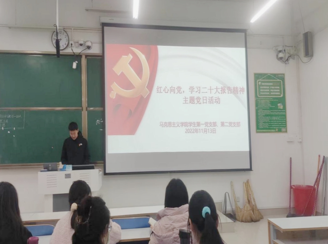 11月23日下午,ok138cn太阳集团529学生第一党支部、第二党支部在社科楼414教室开展“红心向党·学习二十大报告精神”主题党日活动。学生第二党支部全体党员参加此次活动。会议由于嘉宁同志主持。