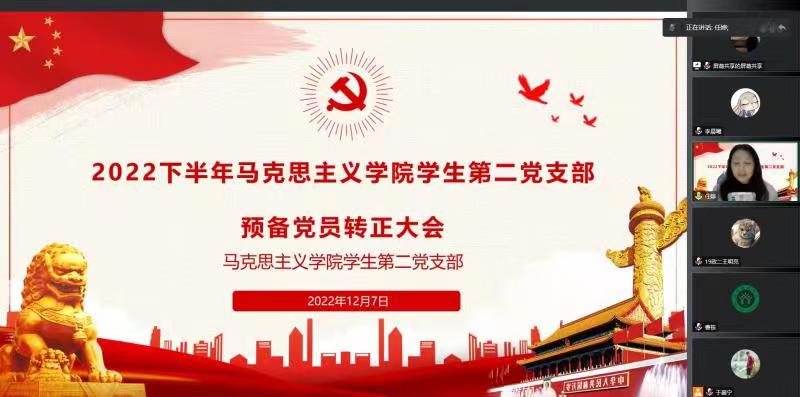 12月7日晚上,ok138cn太阳集团529学生第二党支部通过腾讯会议召开2022年下半年预备党员转正大会。学院学生第二党支部正式党员曹栋、任婷、王明亮、刘鹏、宋羽潇及学生第二党支部全体预备党员参加本次会议。会议由于嘉宁同志主持。