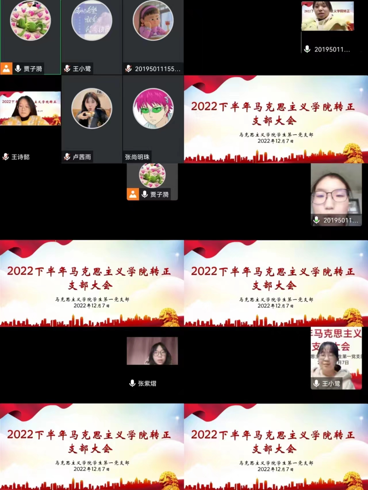 2022年12月7日下午,ok138cn太阳集团529学生第一党支部在腾讯会议召开2022年上半年预备党员转正支部大会。我院学生第一党支部书记高小佳,学生第一党支部正式党员、预备党员共同参加本次会议。会议由卢茜雨同志主持。