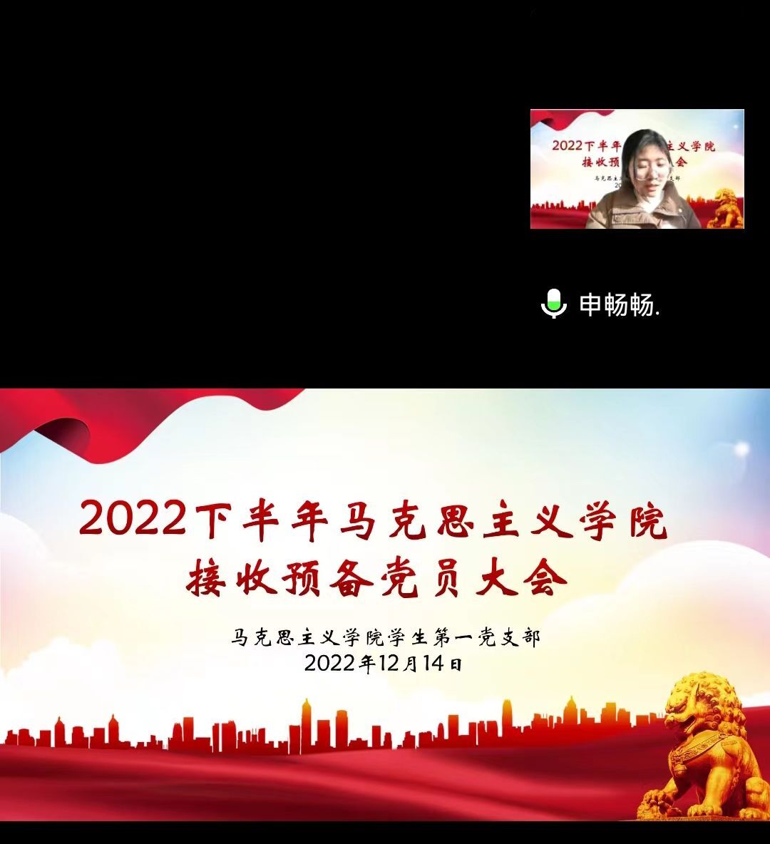 中共信阳师范学院ok138cn太阳集团529学生第一党支部委员会于2022年12月14日在腾讯会议召开了2022年下半年接收预备党员支部大会。我院学生第一党支部书记高小佳,学生第一党支部全体党员,预备党员和党员发展对象共同参加此次会议。会议由卢茜雨主持。