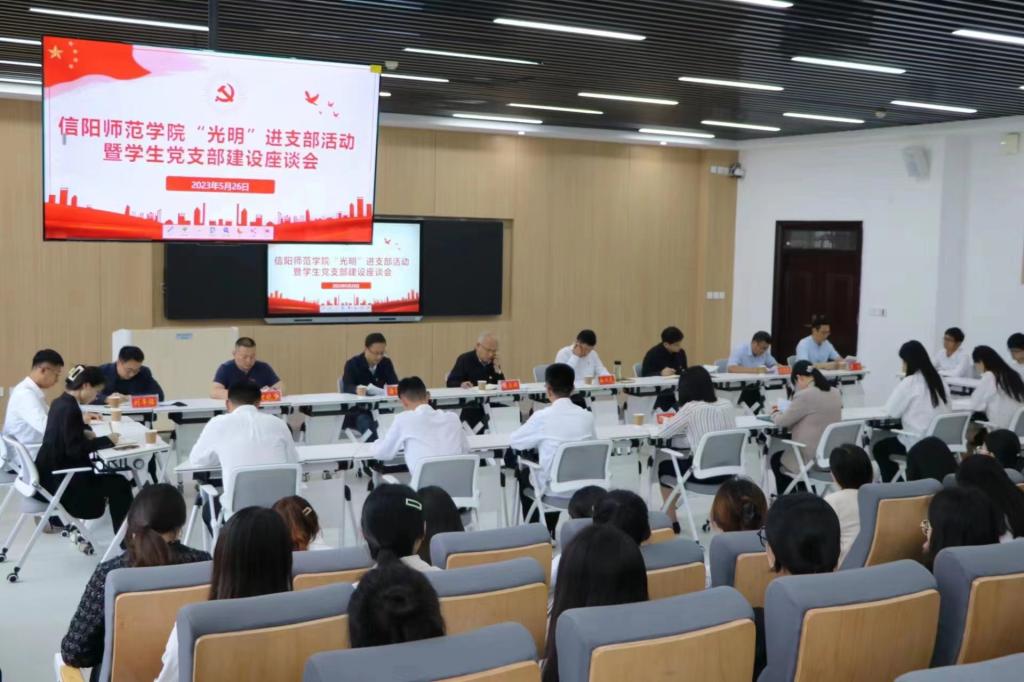 5月26日下午,校党委副书记龚立新带领党委组织部、党委办公室、数学与统计学院等部门负责同志莅临ok138cn太阳集团529指导开展“光明”进支部活动暨学生党支部建设座谈会。学院领导班子成员、相关学院党支部负责人、学生党员代表共同参与会议。会议由党委委员、组织部长林兴岚主持。