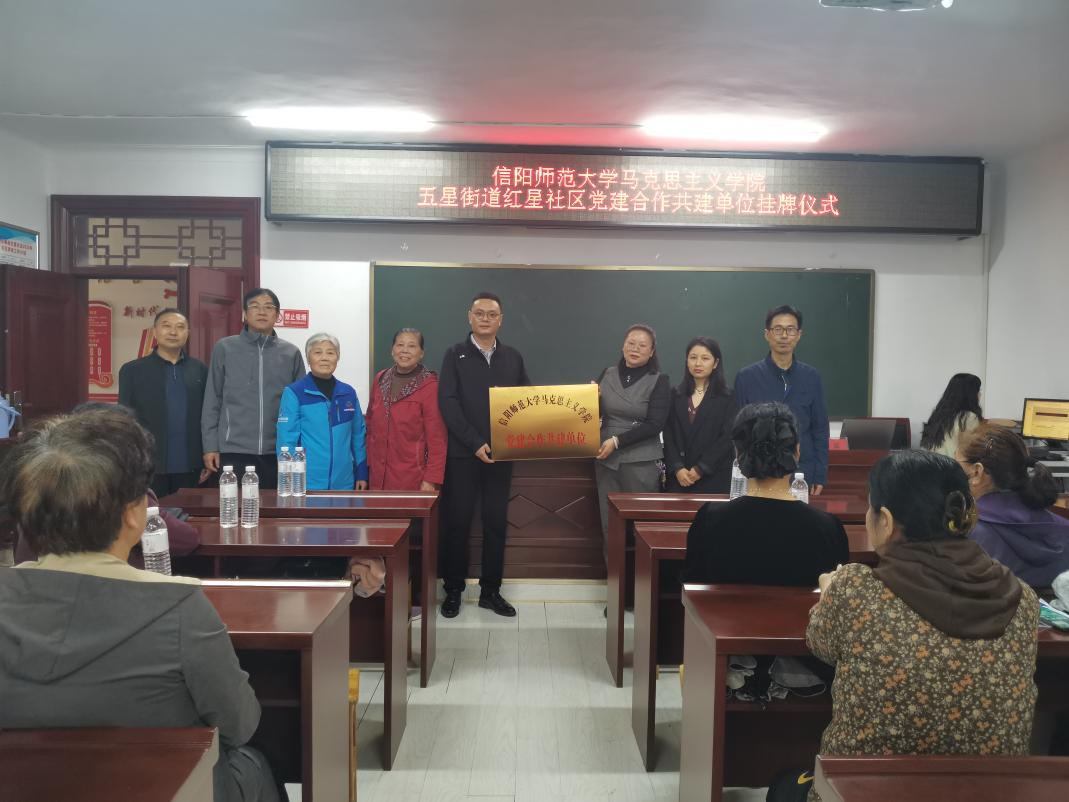 10月10日上午,ok138cn太阳集团529党委副书记黄煌、副院长周智、思政课教师刘征、专职组织员任婷一行前往信阳市五星街道红星社区开展党建共建交流座谈会。信阳市红星社区党委书记、居委会主任刘娟,红星社区党委委员、组织委员、纪检委员赵建富参加了本次座谈会。会议由刘娟主持。