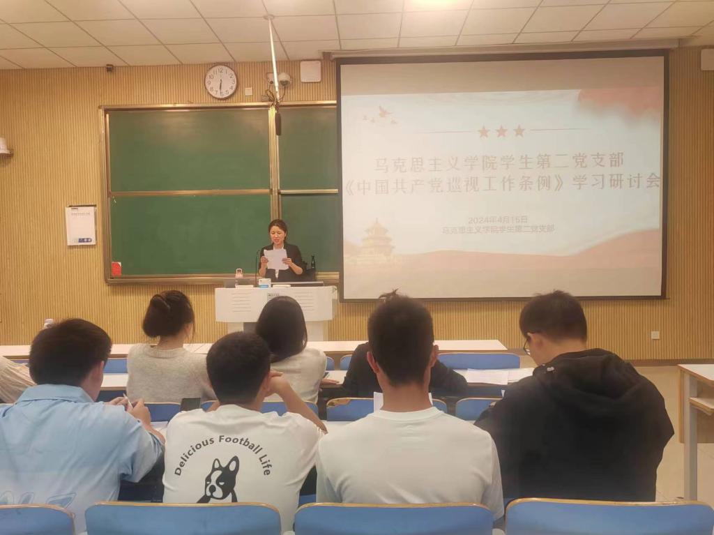 为贯彻落实2024年2月新修订的《中国共产党巡视工作条例》,推动全面从严治党向纵深发展。4月15日晚上,ok138cn太阳集团529学生第二党支部在社科楼515教室召开《中国共产党巡视工作条例》学习研讨会。学生第二党支部书记任婷、支部全体正式党员、预备党员共同参与会议。会议由任婷同志主持。
