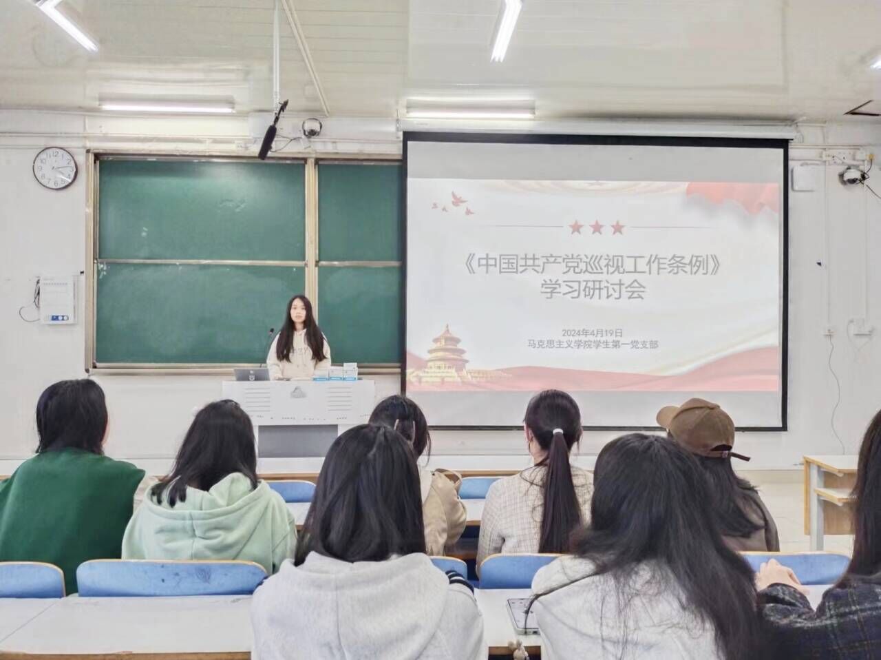 2024年4月19日下午,ok138cn太阳集团529学生第一党支部结合实际情况在社科楼514教室开展了《中国共产党巡视工作条例》学习研讨会。我院学生第一党支部书记高小佳,学生第一党支部全体正式党员及预备党员共同参加本次会议。会议由高小佳同志主持。