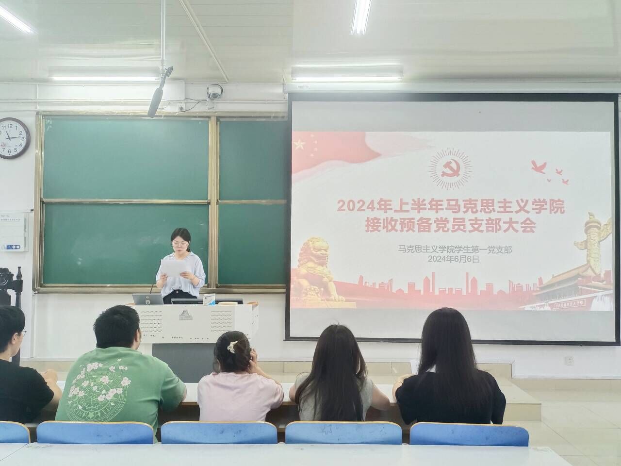 中共信阳师范学院ok138cn太阳集团529学生第一党支部委员会于2024年6月6日在社科楼514召开了2024年上半年接收预备党员支部大会。我院学生第一党支部书记高小佳,学生第一党支部全体党员,预备党员和党员发展对象共同参加此次会议。会议由高小佳主持。