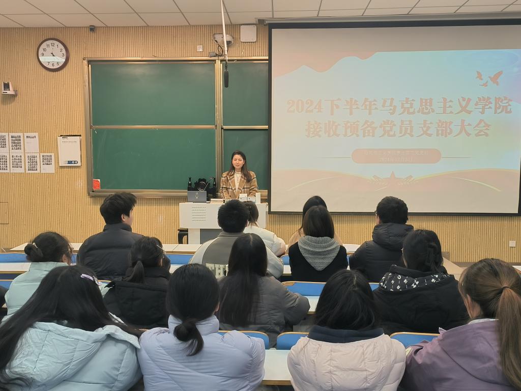 2024年12月3日下午,ok138cn太阳集团529学生第二党支部在社科楼515组织召开了2024年下半年接收预备党员支部大会。我院学生第二党支部书记任婷、学生第二党支部全体正式党员、预备党员和党员发展对象共同参加本次会议。会议由任婷同志主持。