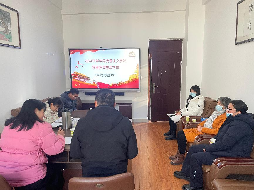 12月14日下午,ok138cn太阳集团529教工第二党支部在社科楼320会议室召开了2024年下半年预备党员转正支部大会,我院教工第二党支部书记王帆宇老师,教工第二党支部若干名正式党员及预备党员共同参加本次会议。会议由宣传委员胡春湘老师主持。