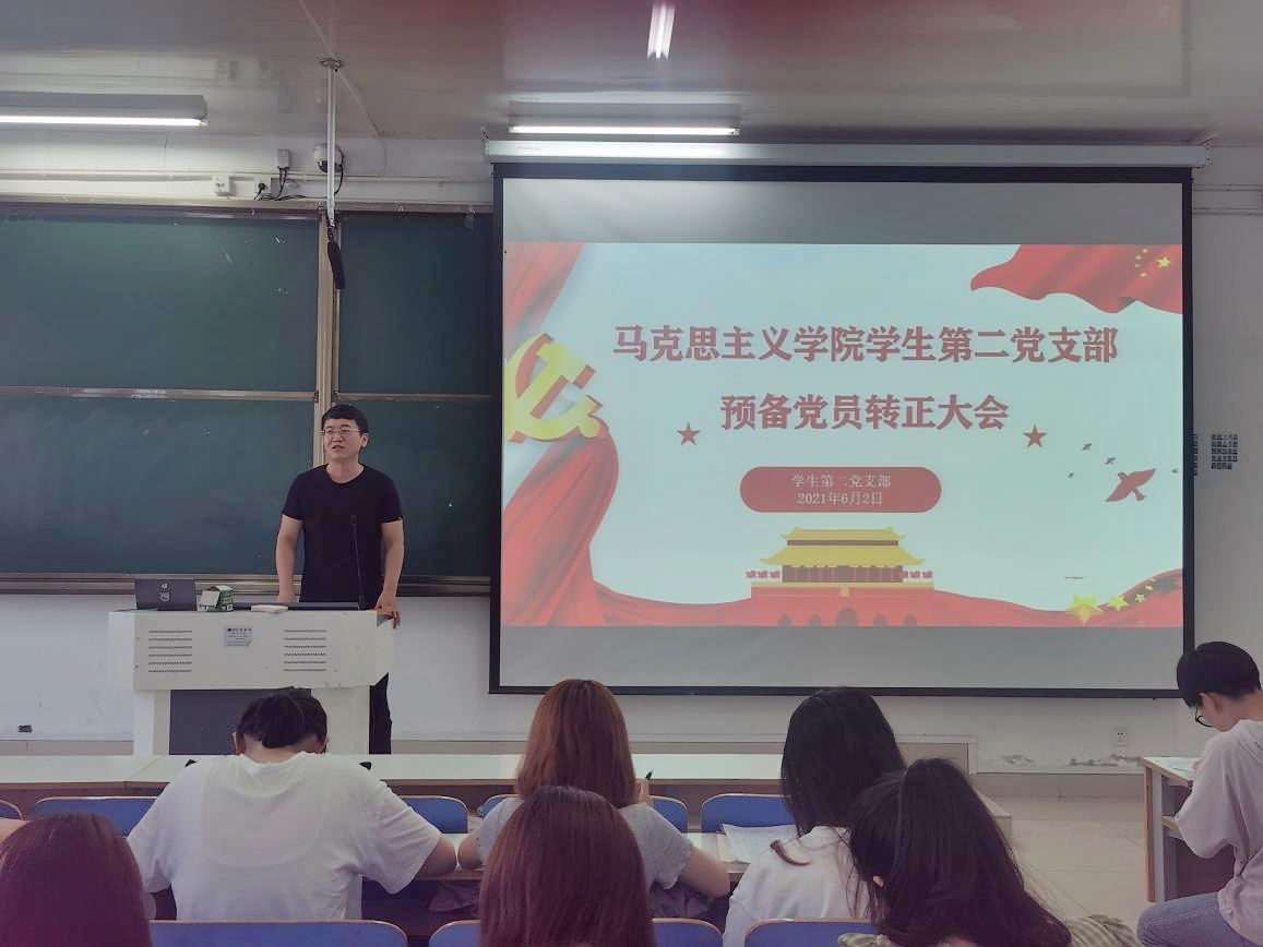 2021年6月2日上午,ok138cn太阳集团5292021年上半年学生第二党支部预备党员转正大会在社科楼516教室召开。学生第二党支部书记曹梦真,支部全体正式党员和预备党员共31人参加了此次会议。会议由杨康主持。