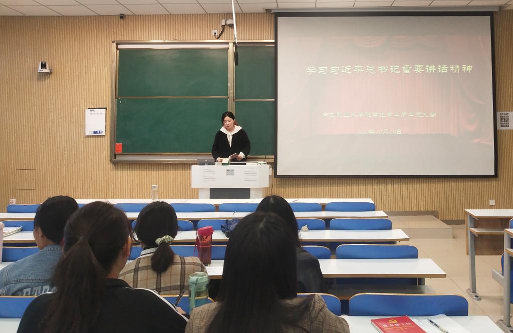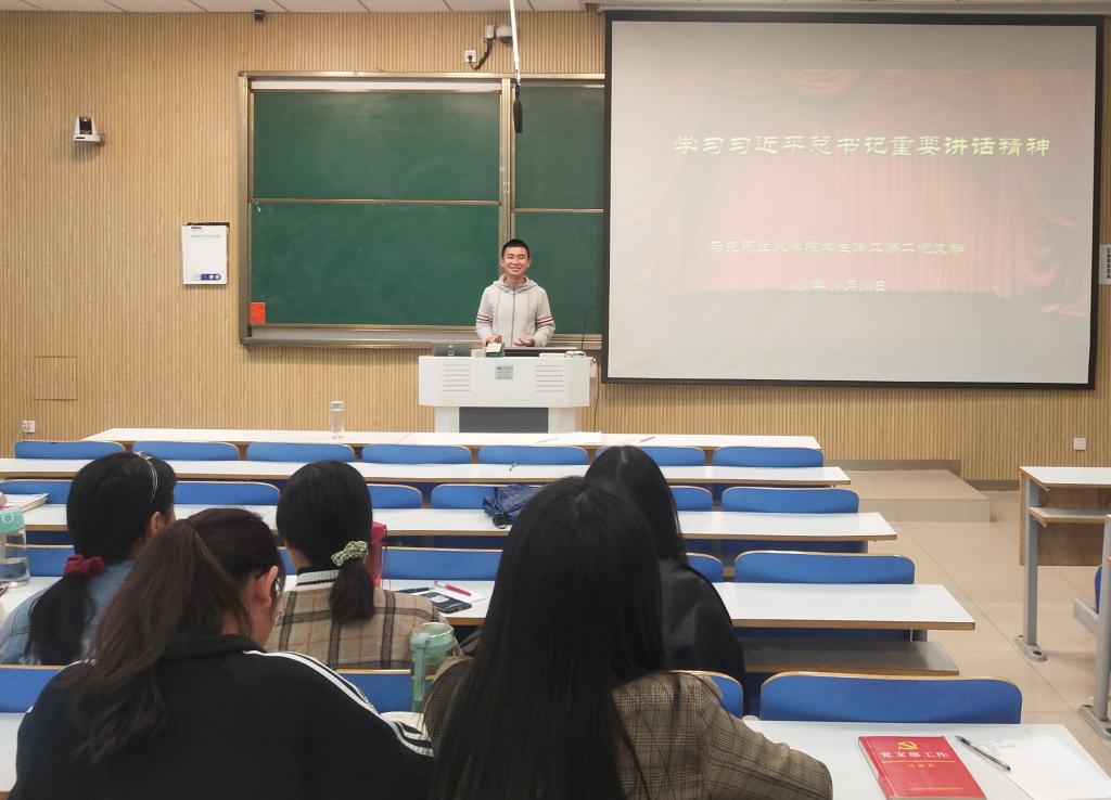 10月20日下午,ok138cn太阳集团529学生第二党支部在社科楼515教室顺利开展“学习习近平总书记重要讲话精神”主题党日活动。学生第二党支部全体成员共同参加了此次会议。会议由艾子元主持。