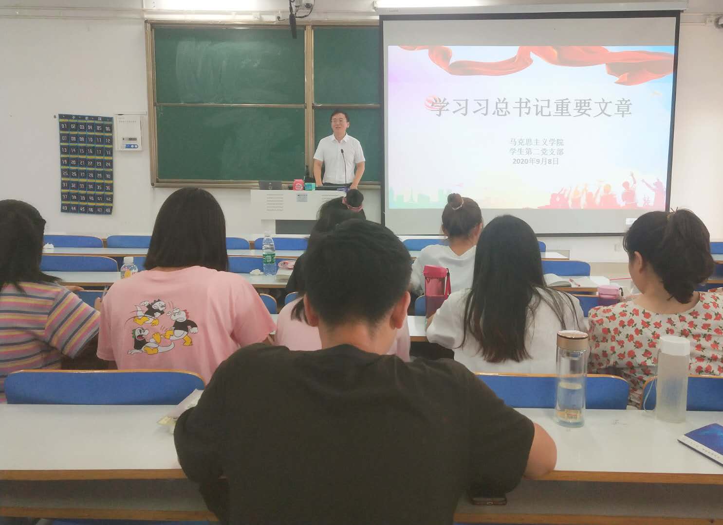 9月8日下午,ok138cn太阳集团529学生第二党支部在社科楼514教室顺利开展“学习习总书记重要文章”主题党日活动。学生第二党支部书记曹栋、全体支部党员共同参加此次活动。会议由支部书记曹栋主持。