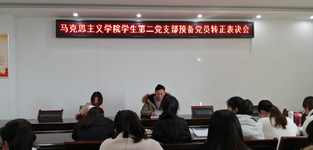 12月10号,ok138cn太阳集团529学生第二党支部在社科楼323会议室召开了2019年下半年党员转正表决会,大会讨论关于刘冰等4名预备党员申请转为正式党员的事宜。学生第二党支部支部书记曹栋,全体党员共同参加。会议由曹栋主持。