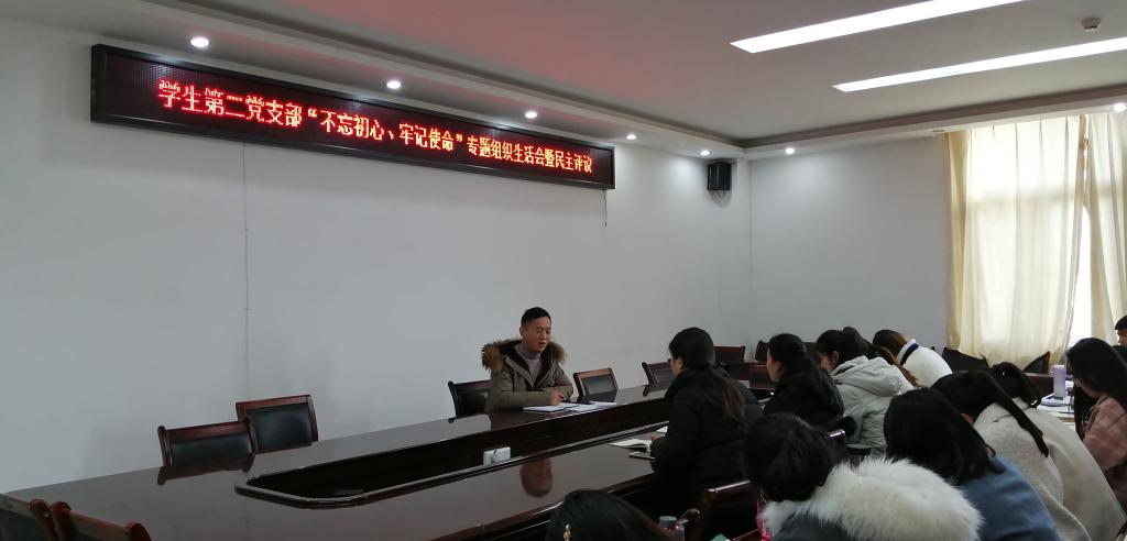 根据习近平总书记关于“不忘初心、牢记使命”主题教育重要讲话和重要指示批示精神,按照中央有关要求,ok138cn太阳集团529学生第二党支部于2019年12月10日召开“不忘初心、牢记使命”专题组织生活会暨民主评议。学生第二党支部全体师生党员参加组织生活会暨民主评议。