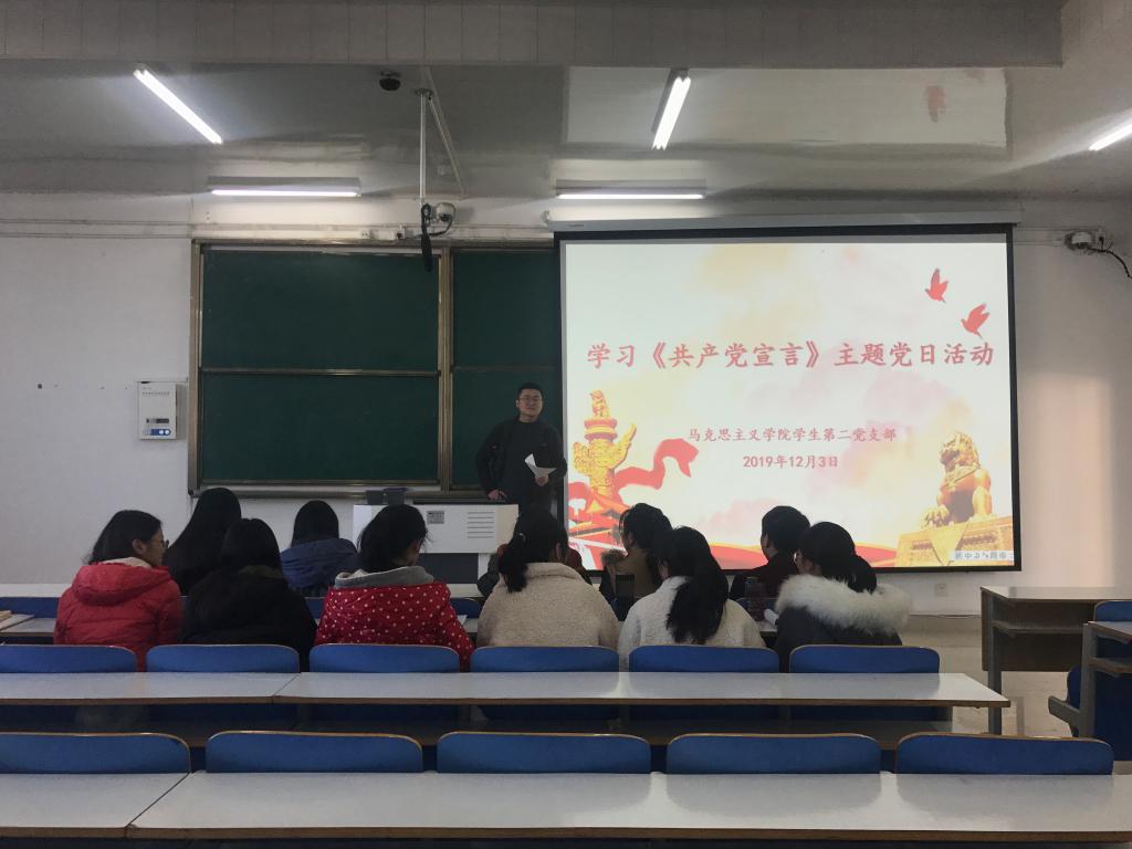 学习马克思主义基本理论是共产党人的必修课,为加强对马克思主义经典著作的学习研究,12月3日下午,我院学生第二党支部在社科楼514教室开展学习《共产党宣言》主题党日活动。学生第二党支部组织委员杨胜利、全体预备党员参加活动。活动由杨胜利主持。