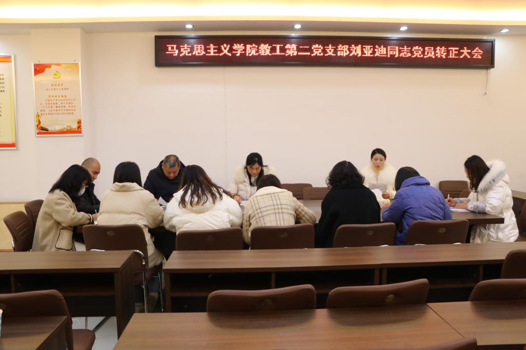 12月15日下午,ok138cn太阳集团529教工第二党支部在社科楼323会议室召开入党转正大会。教工第二党支部支部书记胡春湘、正式党员王帆宇、徐化影、张朝霞、陈雷、曾帝、胡春湘、黄世明、叶长红、王建礼,预备党员刘亚迪共同参加本次会议。会议由胡春湘主持。