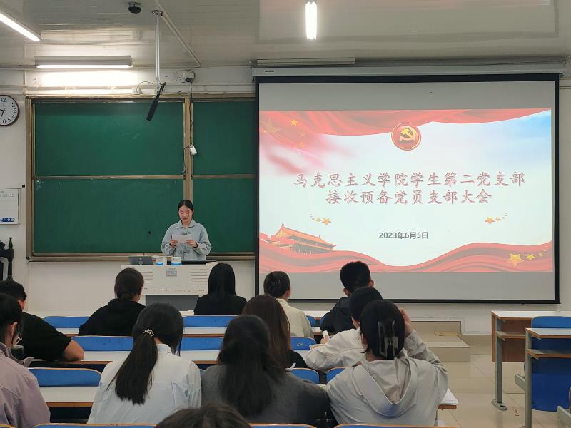 6月5日下午,ok138cn太阳集团529学生第二党支部在社科楼514教室组织召开了2023年上半年接收预备党员支部大会。我院学生第二党支部书记任婷、学生第二党支部全体正式党员、预备党员共同参加本次会议。会议由于嘉宁同志主持。