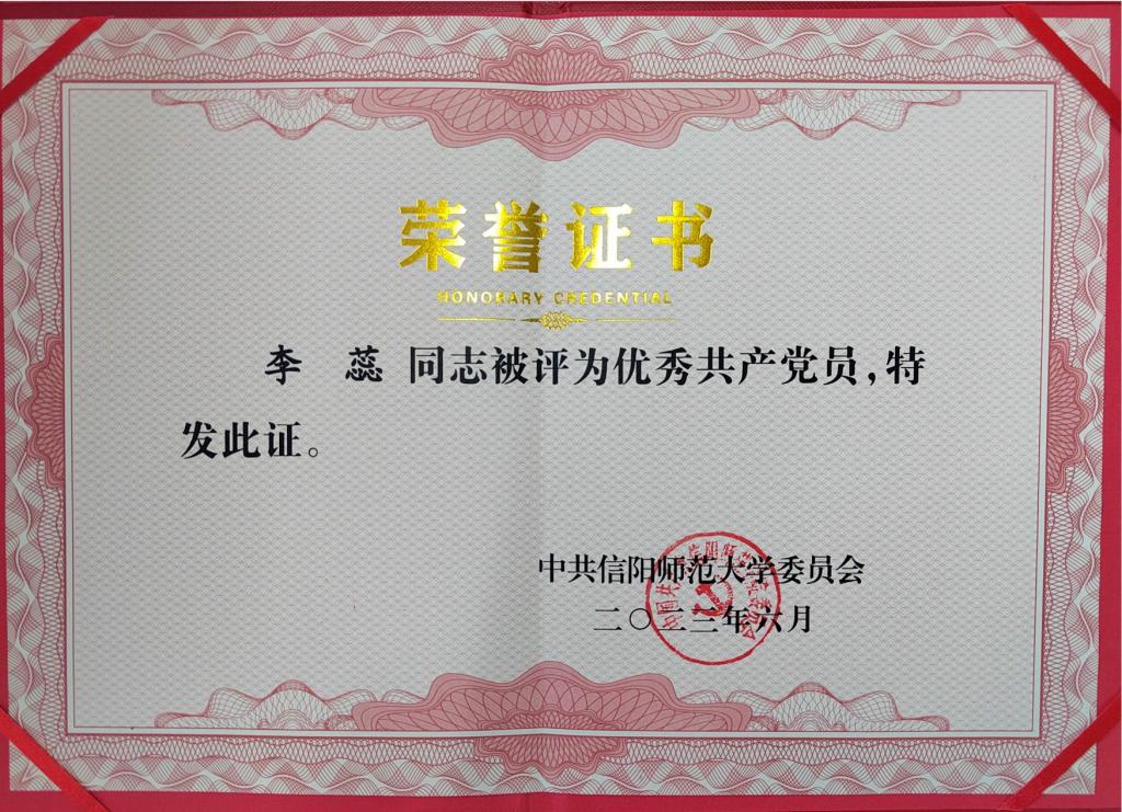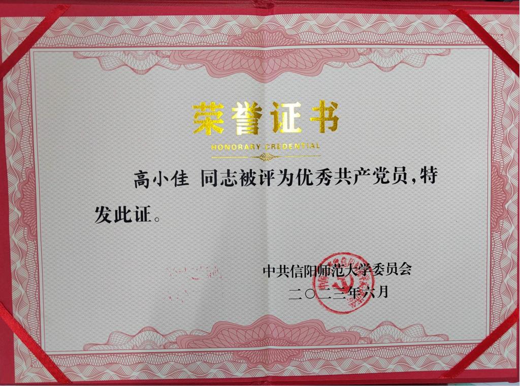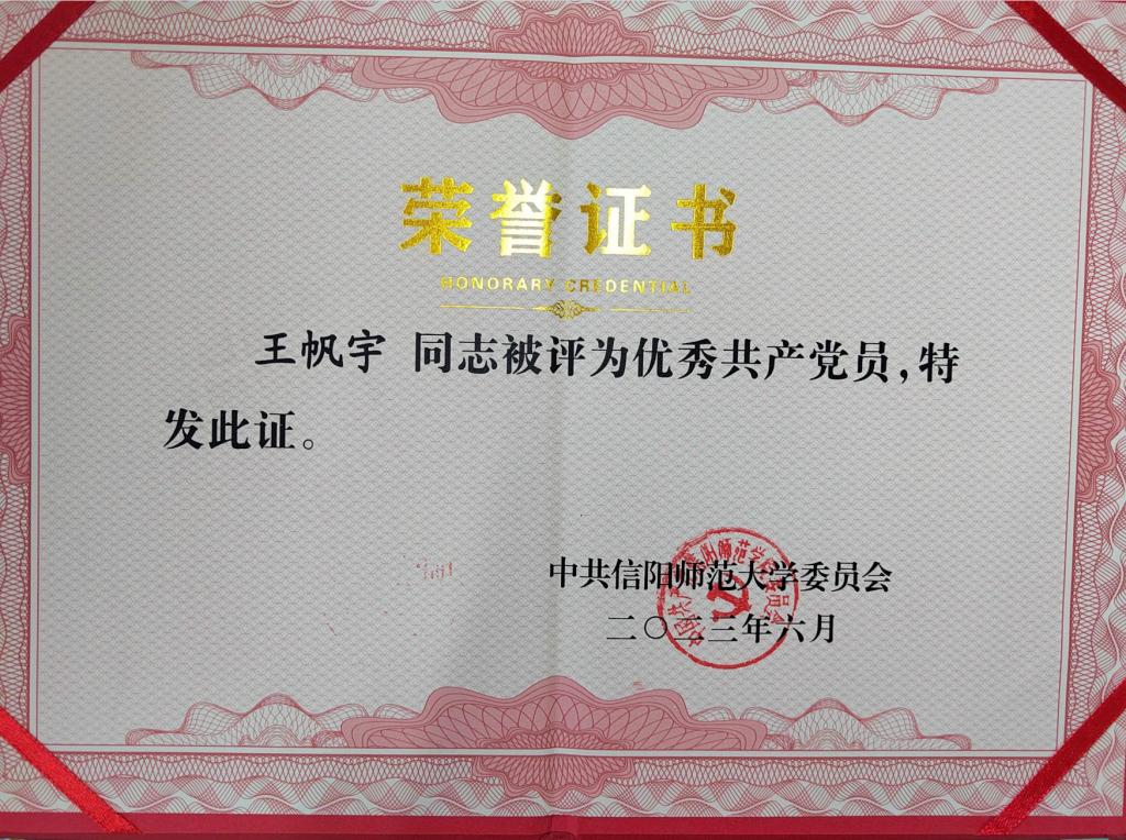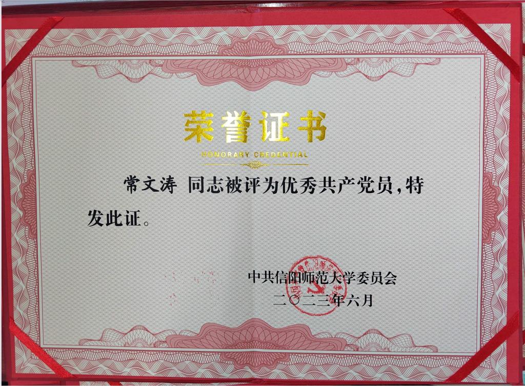 2023年6月,ok138cn太阳集团529黄煌同志被评为ok138cn太阳集团优秀党务工作者;ok138cn太阳集团529李蕊、厉有国、常文涛、王帆宇、高小佳同志被评为ok138cn太阳集团优秀共产党员;ok138cn太阳集团529本科生于嘉宁同志被评为优秀共产党员。
