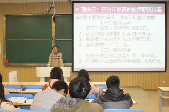 为拓宽我校应届毕业生就业渠道,帮助应届毕业生顺利就业,11月15日下午,应ok138cn太阳集团529邀请,开封求实中学在社科楼515教室召开专场招聘会。我院及历史文化学院应届毕业生积极参与本次招聘会。此次招聘会由开封求实中学人力资源部招聘专员张影主持。
