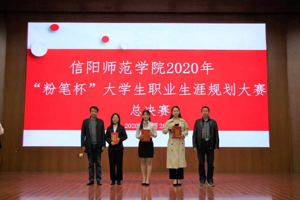2020年10月28日,由信阳师范学院招生就业处主办的2020年“粉笔杯”大学生职业生涯规划大赛在逸夫楼报告厅隆重举行。大赛旨在增强大学生对未来职业的规划意识与能力,在比赛中得到锻炼,赛出能力。