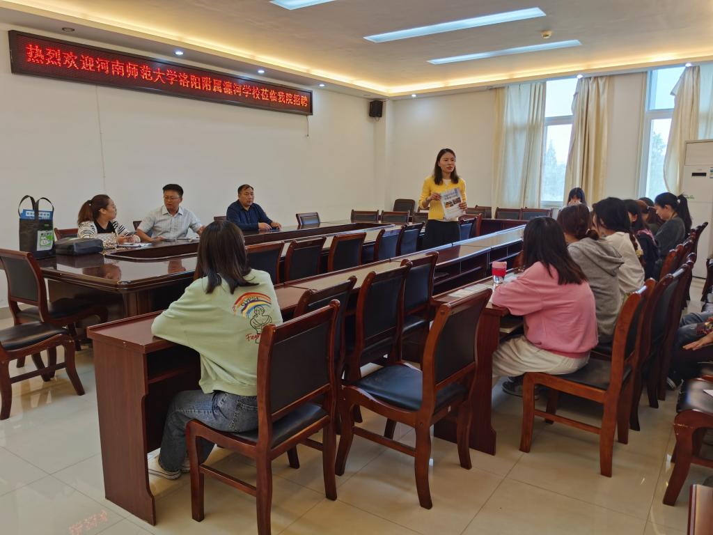 5月12日上午,河南师范大学附属洛阳瀍河学校莅临我院招聘,招聘会在社科楼323会议室顺利召开。河南师范大学附属洛阳瀍河学校各位招聘老师代表、就业秘书陶青青、辅导员曹菁菁以及我院2018级学生代表共同参加本次招聘会。
