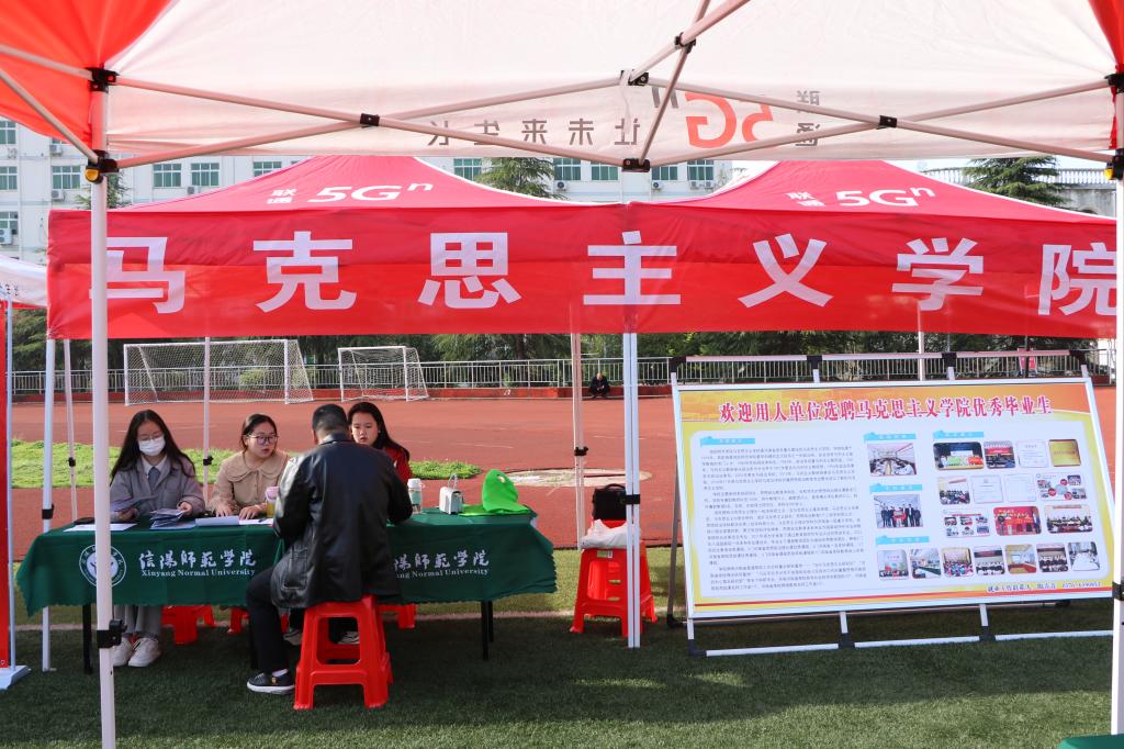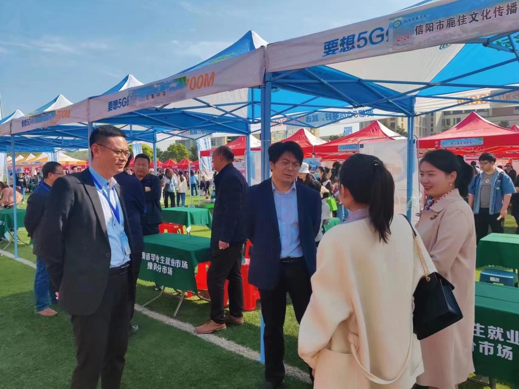 4月8日上午,河南省毕业生就业市场豫南分市场暨信阳师范学院2023届毕业生春季双向选择洽谈会在我校西操场拉开帷幕。本次双选会由河南省教育厅主办,河南省大中专就业服务中心、信阳师范学院、信阳市人力资源和社会保障局共同承办。我院党委书记朱四倍,院长唐国战,副院长周智、程晋富、訾其伦,党委副书记黄煌和就业秘书陶青青前往西操场ok138cn太阳集团529服务平台进行走访。