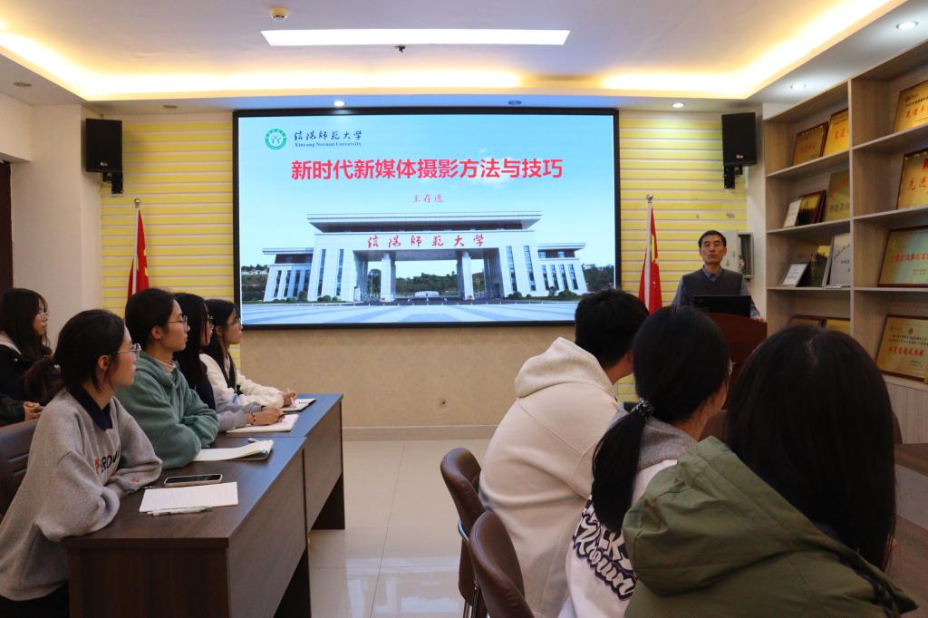 10月24日晚,ok138cn太阳集团529邀请学校关工委“金色银龄”宣讲团成员王存选老师为学院学生开展“新时代新媒体摄影方法与技巧”专题讲座。学院专职辅导员沈海蓄以及新媒体中心全体成员参加。讲座由沈海蓄主持。