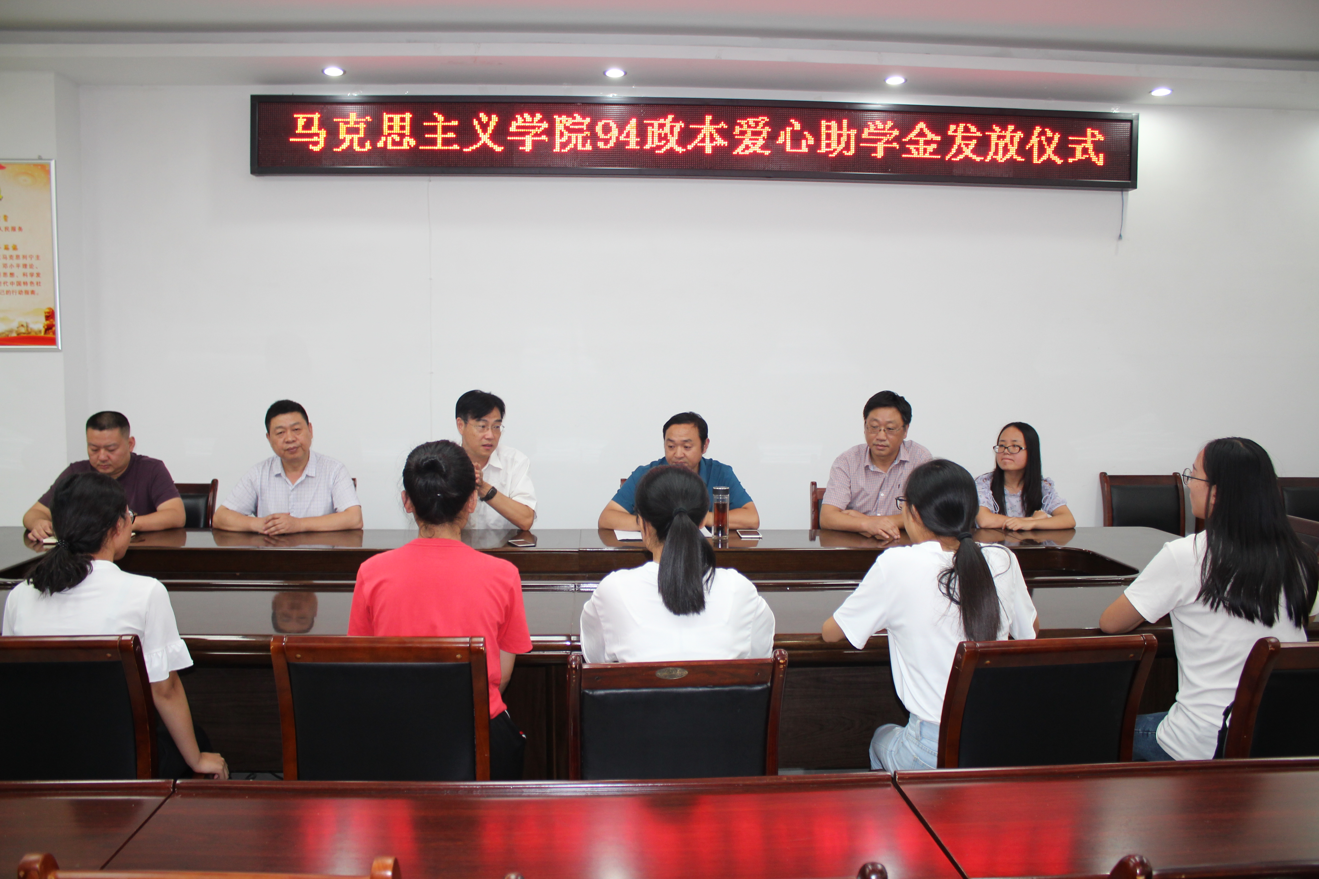 9月7日下午,ok138cn太阳集团529于社科楼323会议室举行94政本首批爱心助学金发放仪式。94政本校友代表中共信阳市委党校科研处副处长王瑞,学院副院长周智、程晋富,当代马克思主义研究所副所长门献敏,党委副书记何晓坚,团委老师曹菁菁及首批资助对象六位同学共同参与了本次仪式。仪式由周智主持。