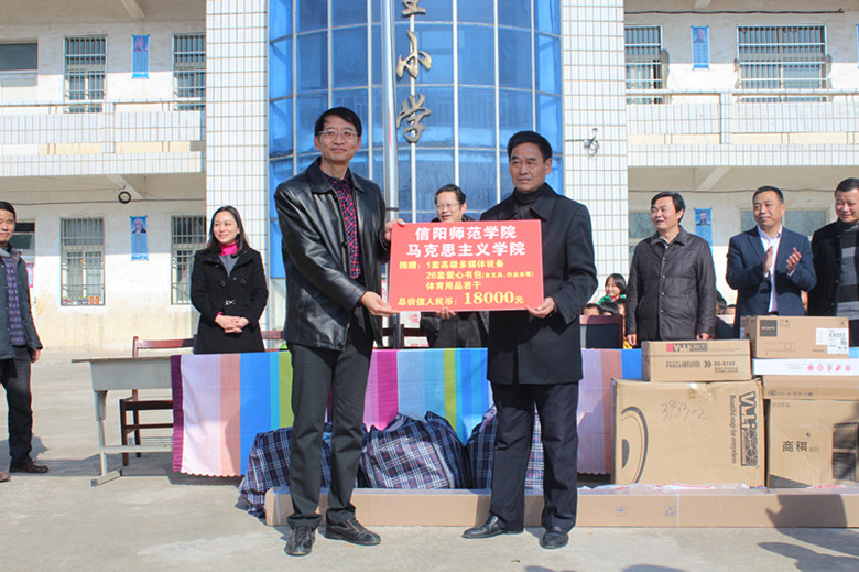 28日上午,教师志愿者开展了农村献爱心活动。学院全体志愿者来到地处边远乡村的潢川县谈店乡万营北京希望小学,开展“爱心捐助乡村小学”活动。该小学现有学生26人,百分之九十以上都是留守儿童。志愿者们为他们送去了一整套电教设备以及一些文体用品,并和小学生们互动交流,激励他们热爱科学、努力学习。