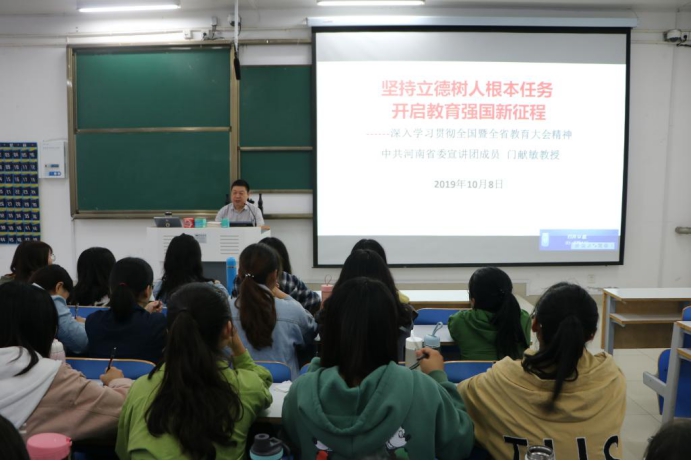 会上,门献敏以党中央在北京召开的全国教育大会为切入点阐明了中国共产党的先进性以及大会的划时代意义,他着重从如何学习贯彻全国教育大会意义、理解建设教育强国战略逻辑、把握教育强国内涵、如何坚持立德树人四个方面对如何深入学习全国教育大会精神作了详细阐述。接着,他分别从马克思与恩格斯、革命教育家、党的历代领导人三个角度为例深入浅出地对建设教育强国作出的贡献进行科学阐述,并引用“教育是国之大计、党之大计”向党员提出应不忘初心、牢记使命的中肯建议。最后,曹栋对本次党课进行总结,他希望全体学生党员及入党积极分子深入了解全国暨全省教育大会精神并积极学习党的相关理论,不断提高自身政治理论水平。(ok138cn太阳集团529 燕凯旋 徐路佳/供稿)